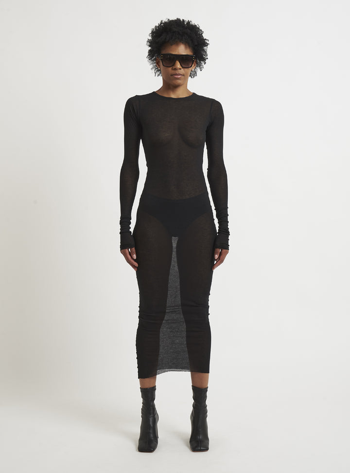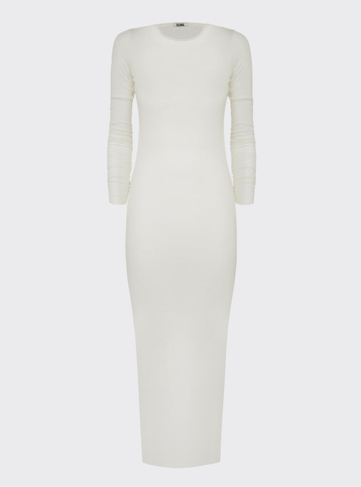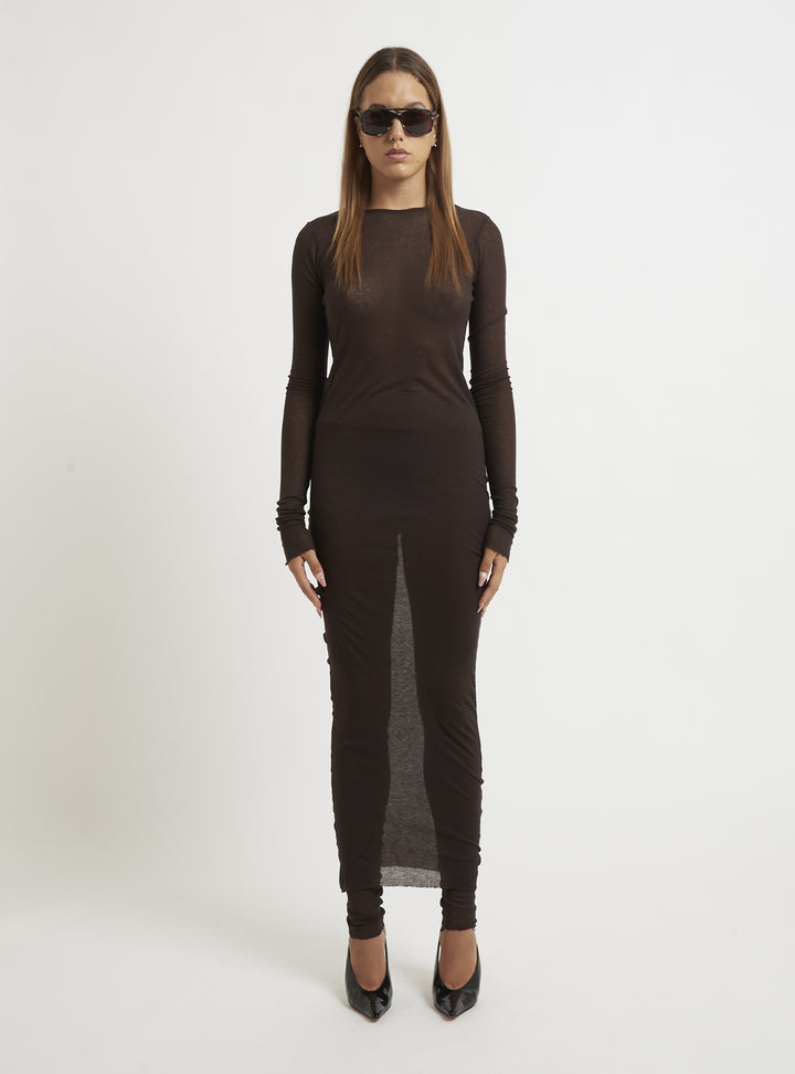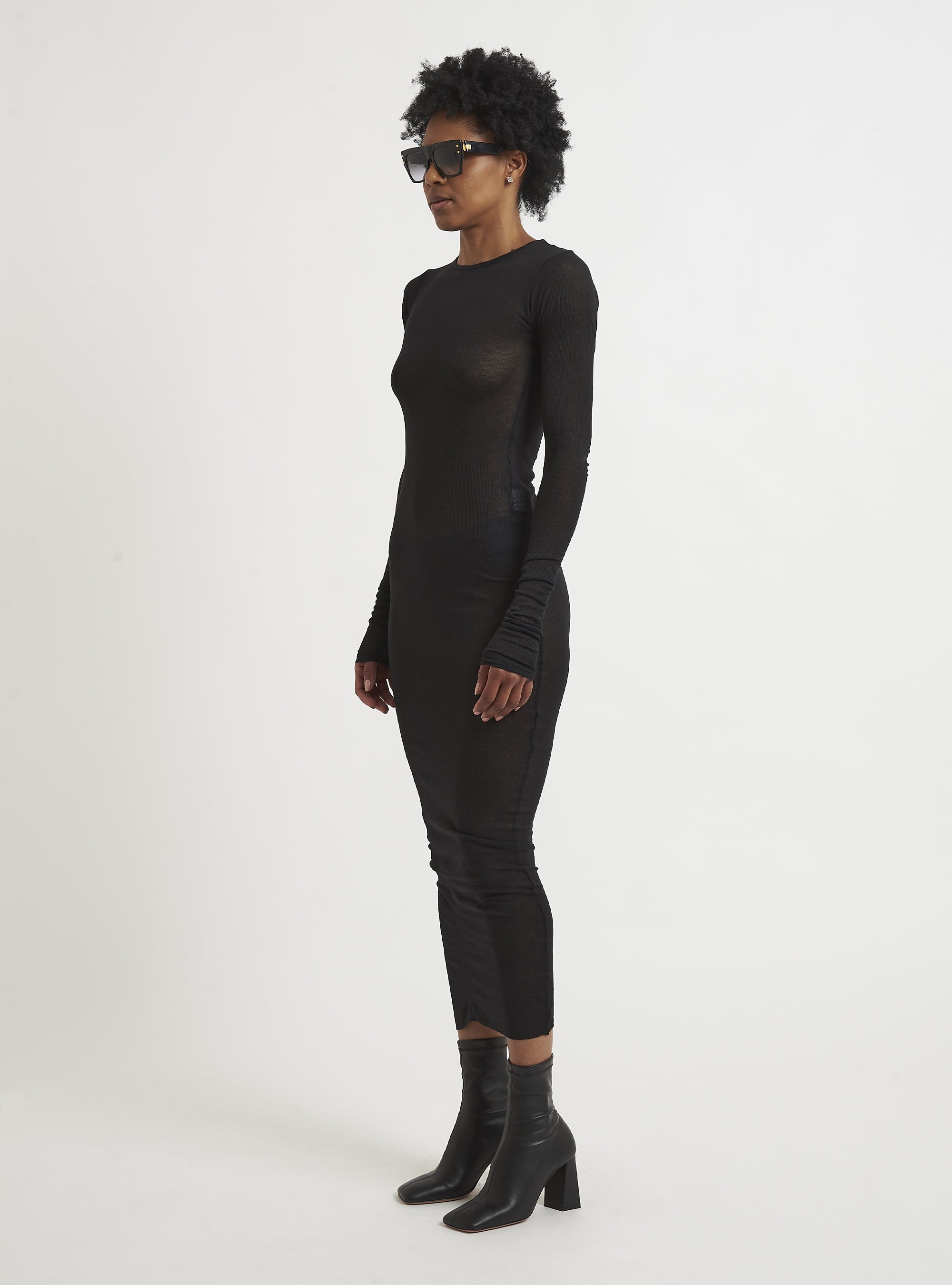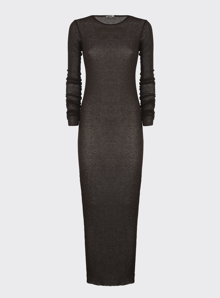 A casual yet sophisticated style characterizes this ribbed crew neck dress. The fitted lines create a casual yet feminine silhouette. Pair it with cashmere leggings for a sophisticated look. Slim fit.
