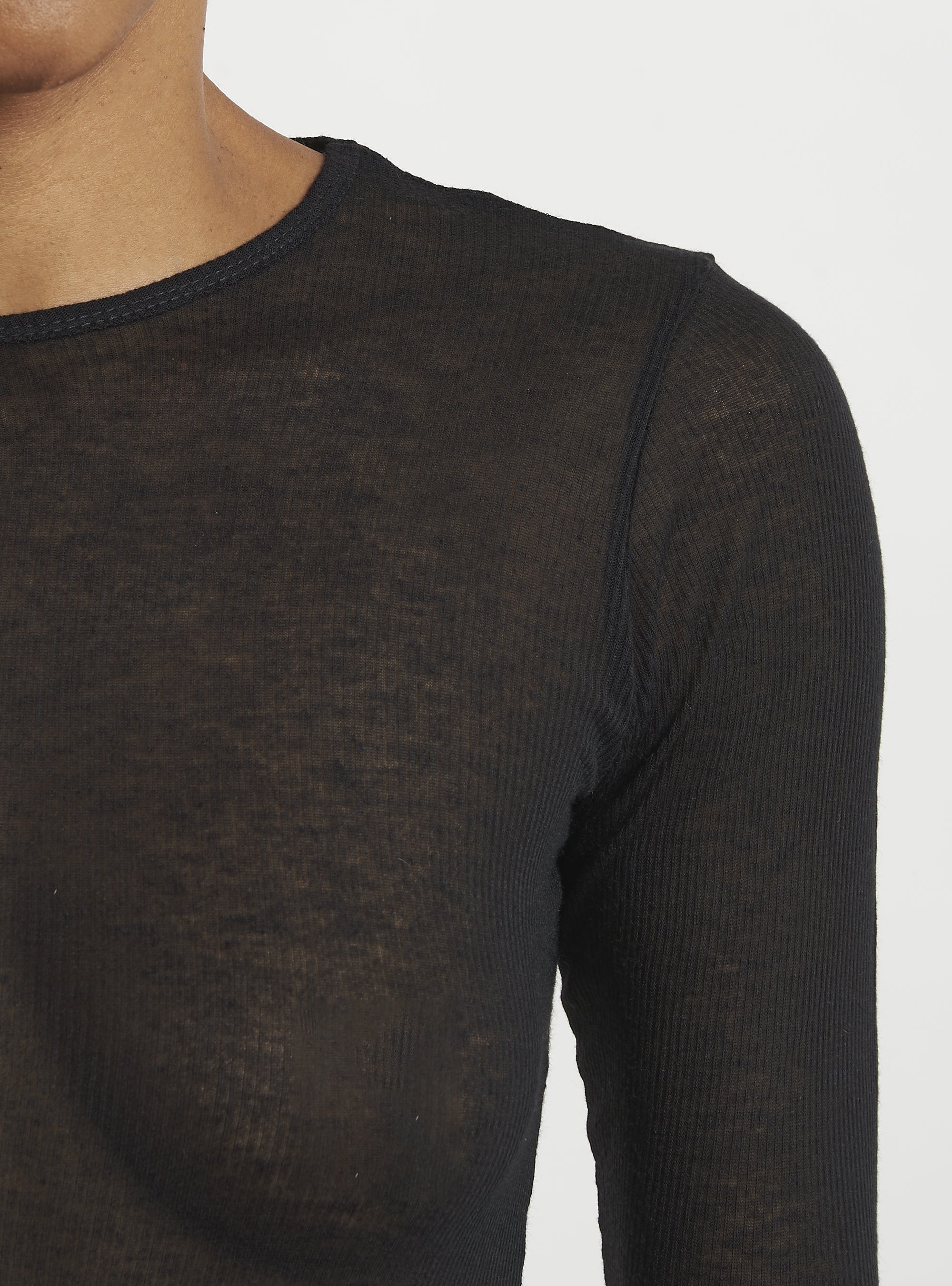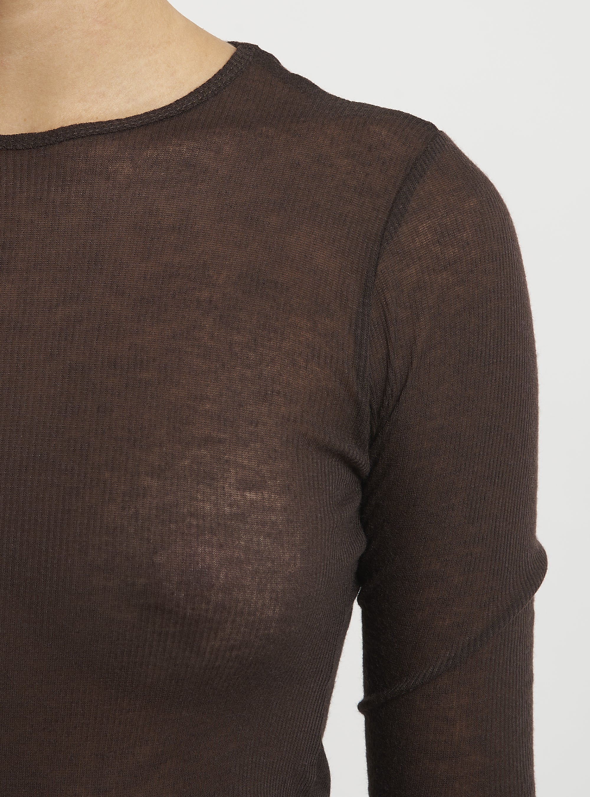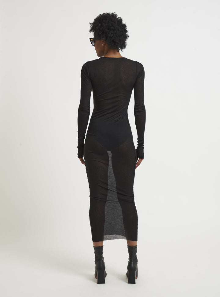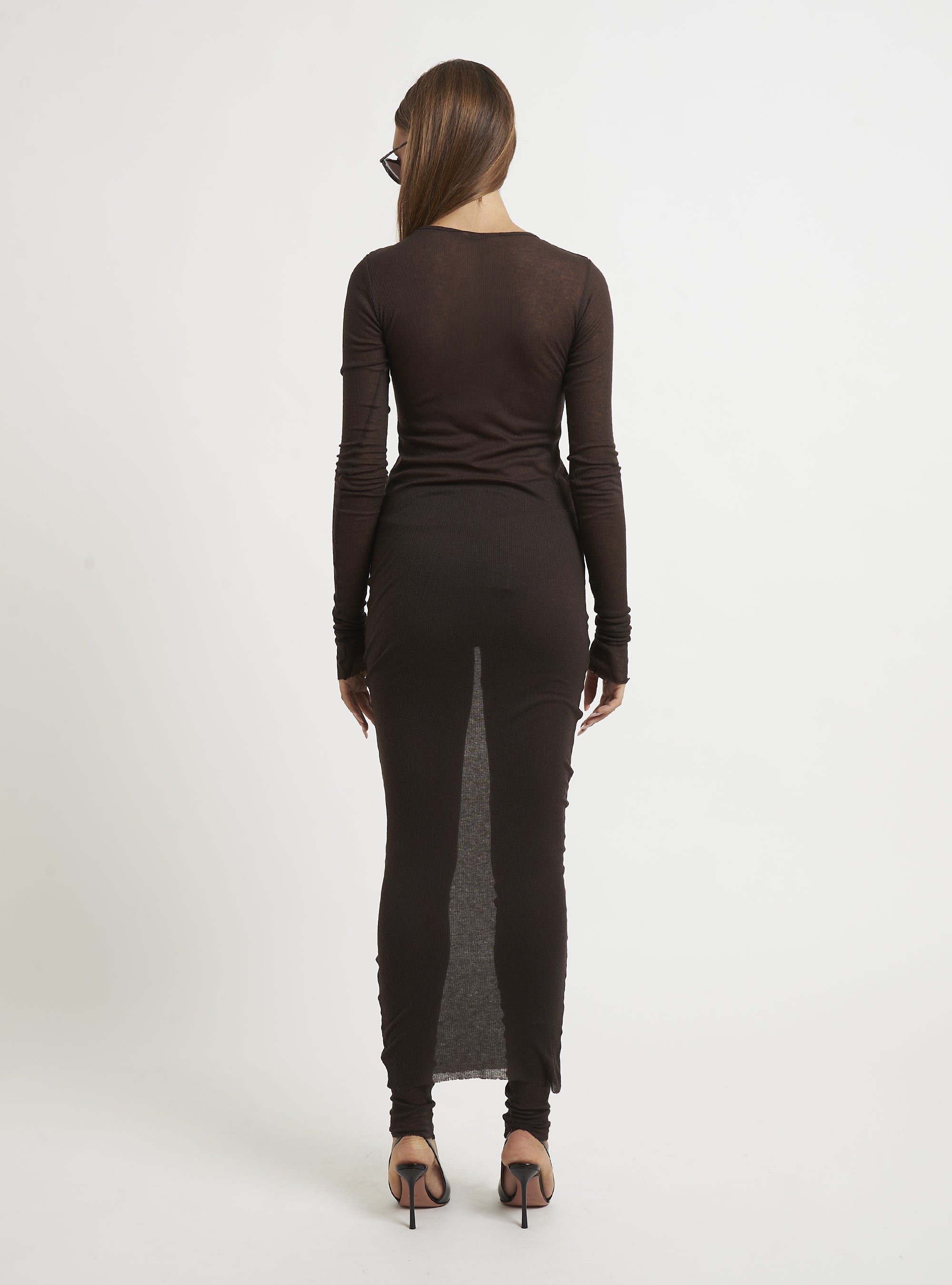 A casual yet sophisticated style characterizes this ribbed crew neck dress. The fitted lines create a casual yet feminine silhouette. Pair it with cashmere leggings for a sophisticated look. Slim fit.