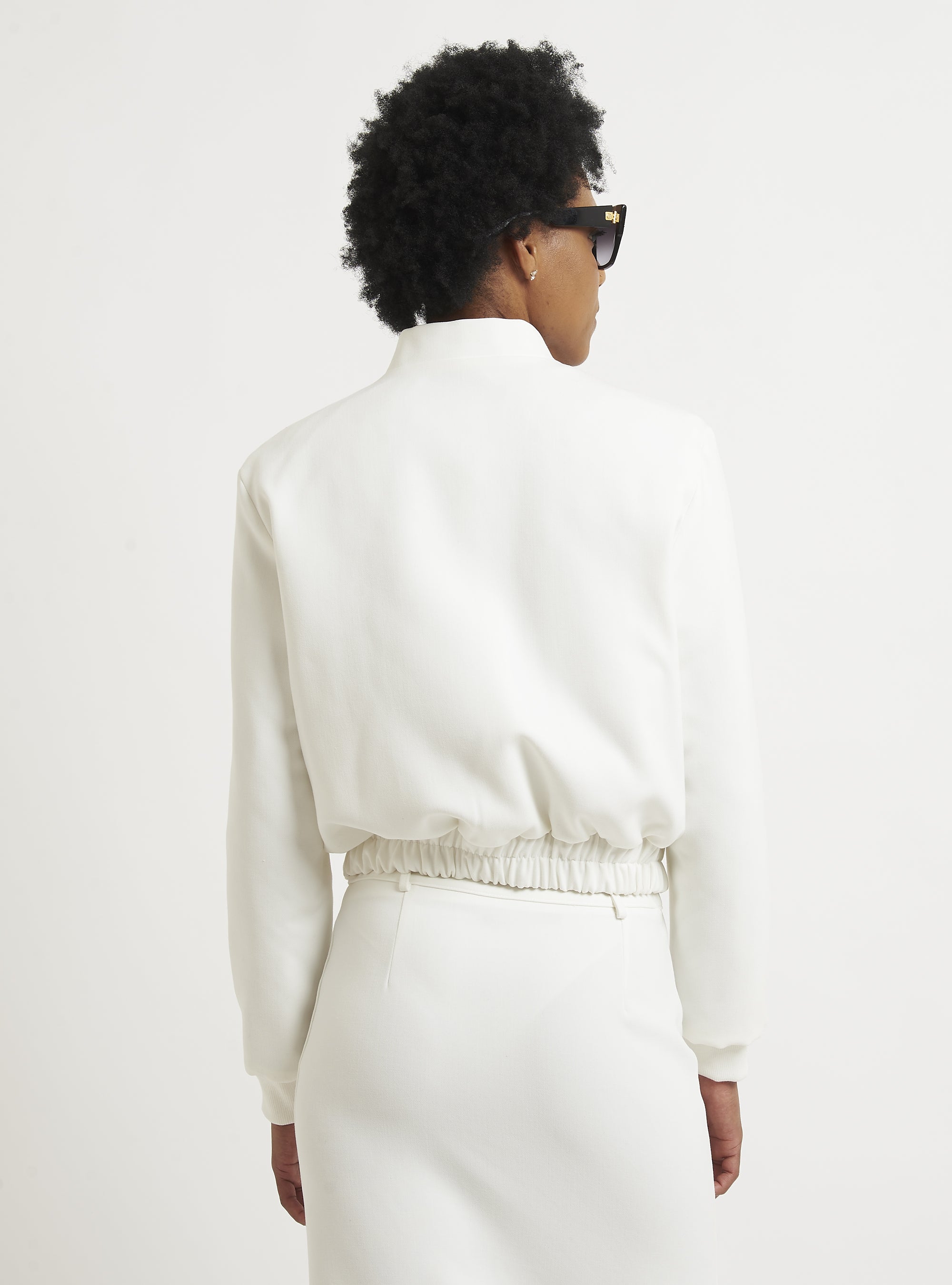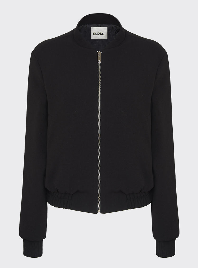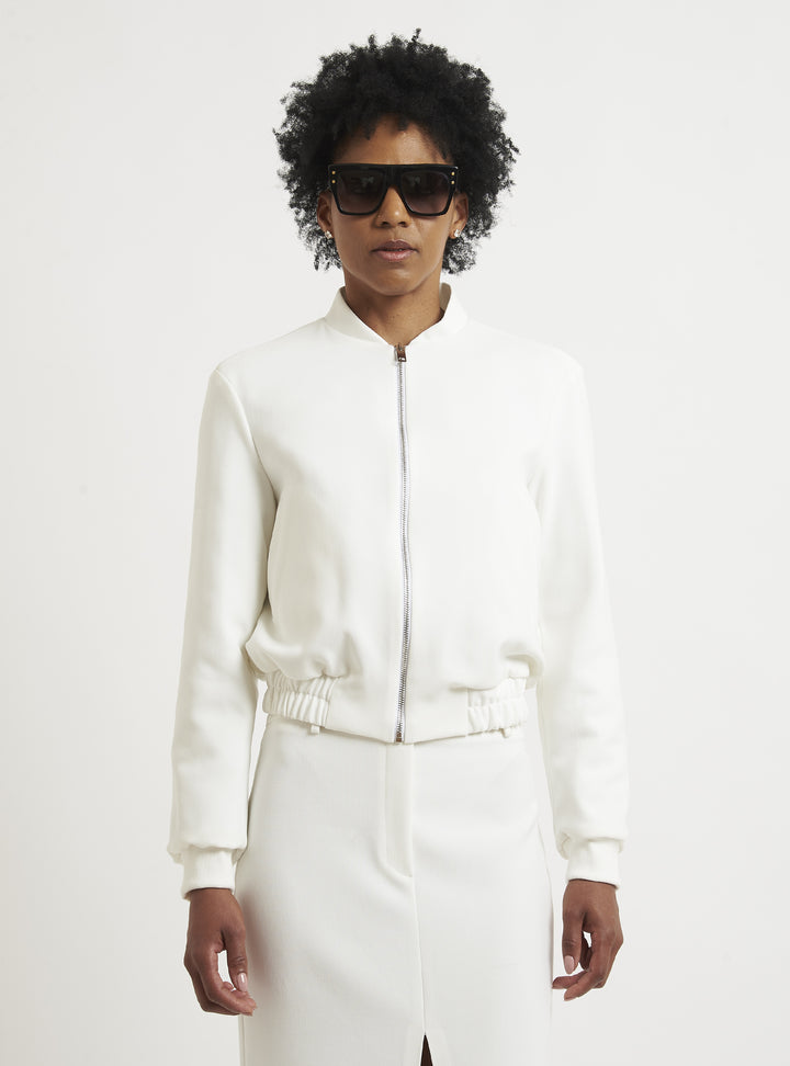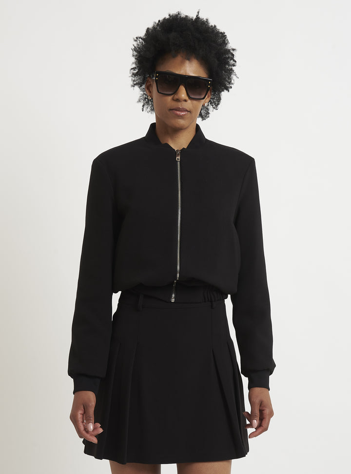 Short padded bomber jacket featuring ribbed trims and a fitted waist. Slim fit.