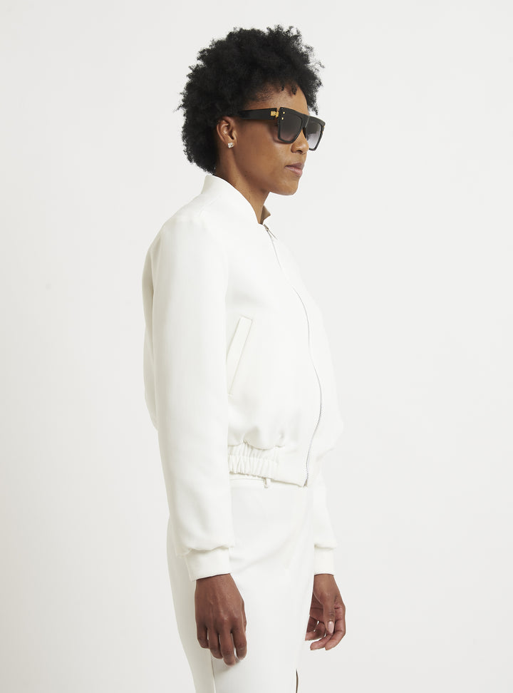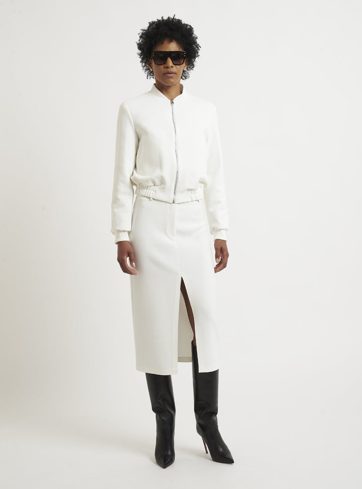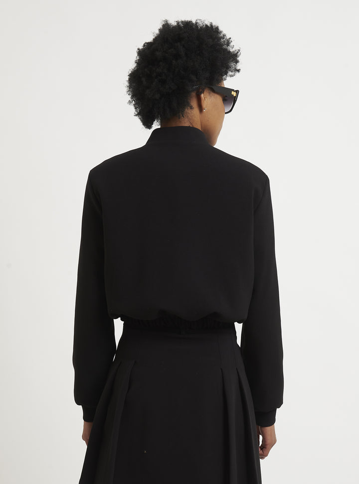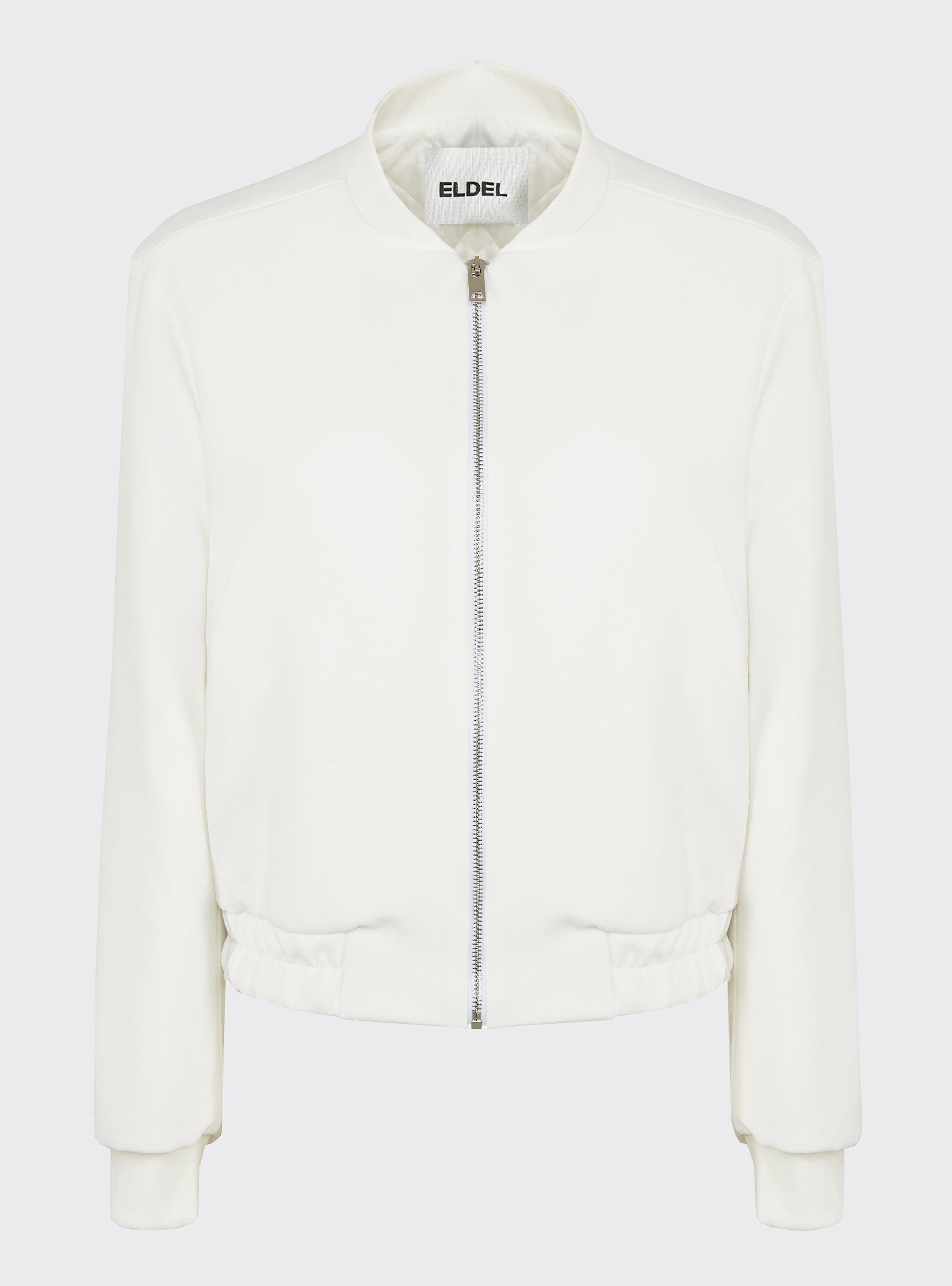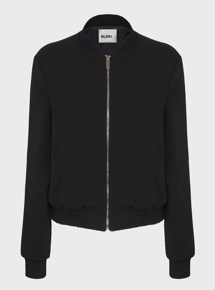 Short padded bomber jacket featuring ribbed trims and a fitted waist. Slim fit.