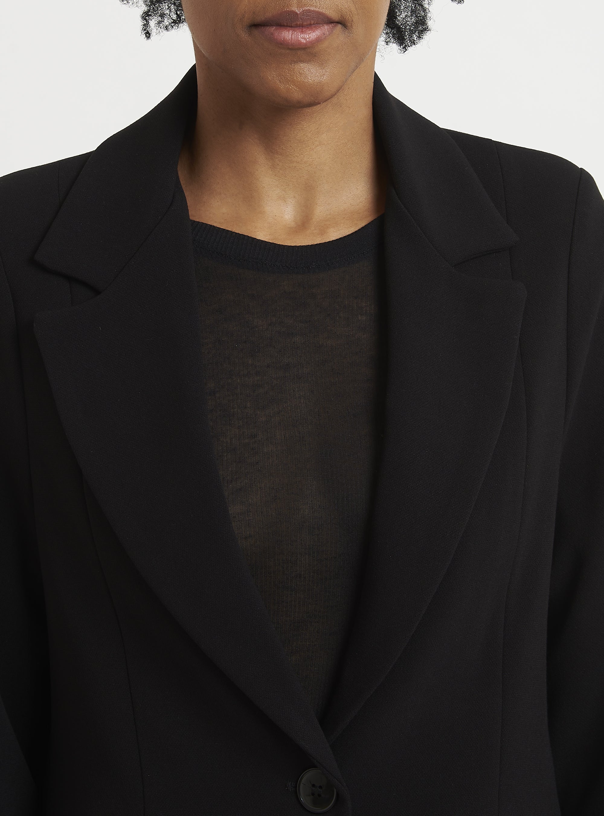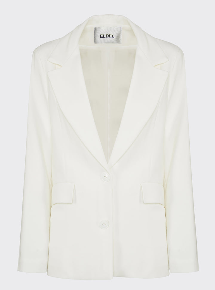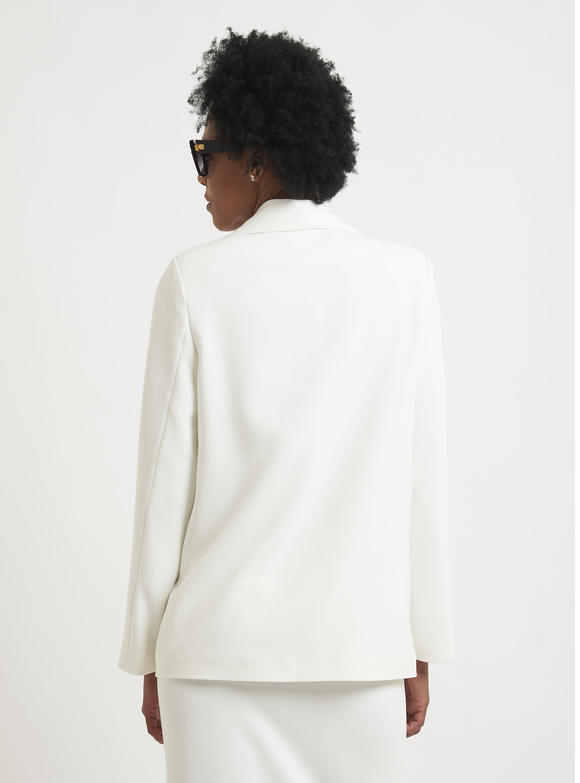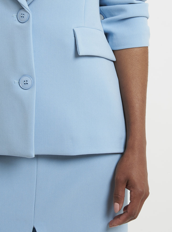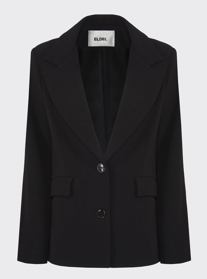 Single-breasted wool jacket. Boxy fit with peak collar and flap pockets. This versatile piece defines your unique style. Fits true to size.