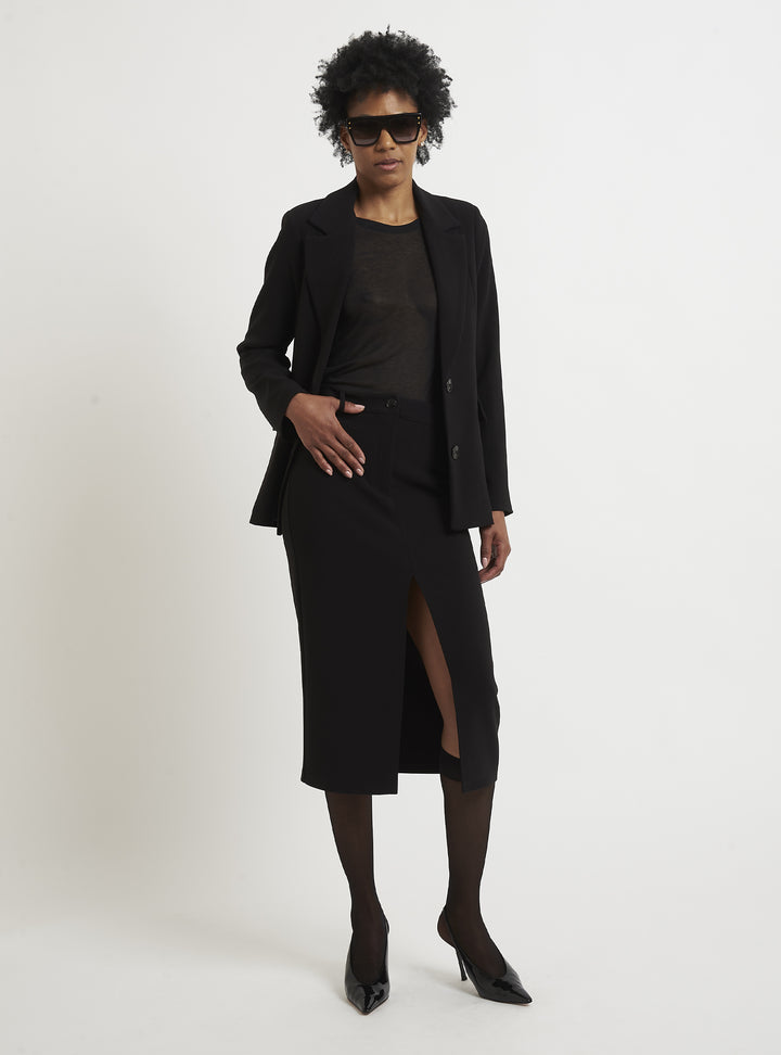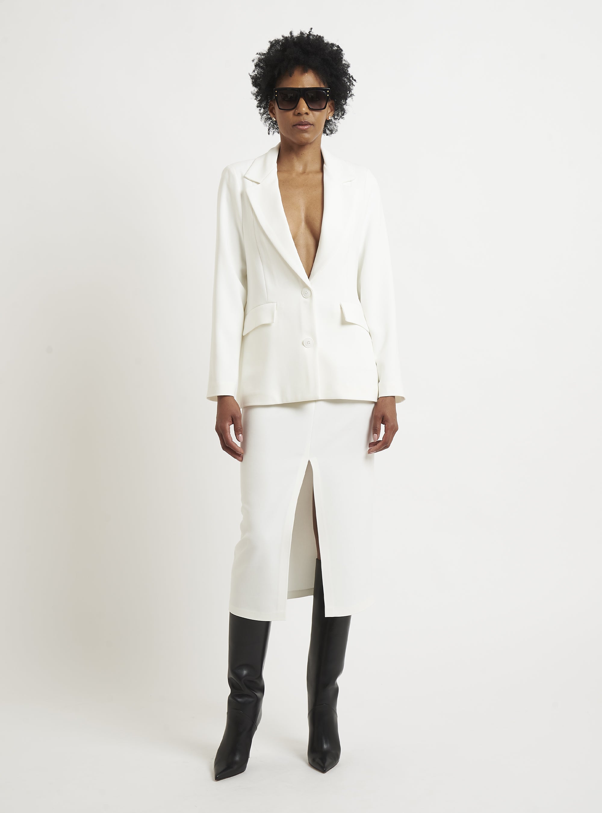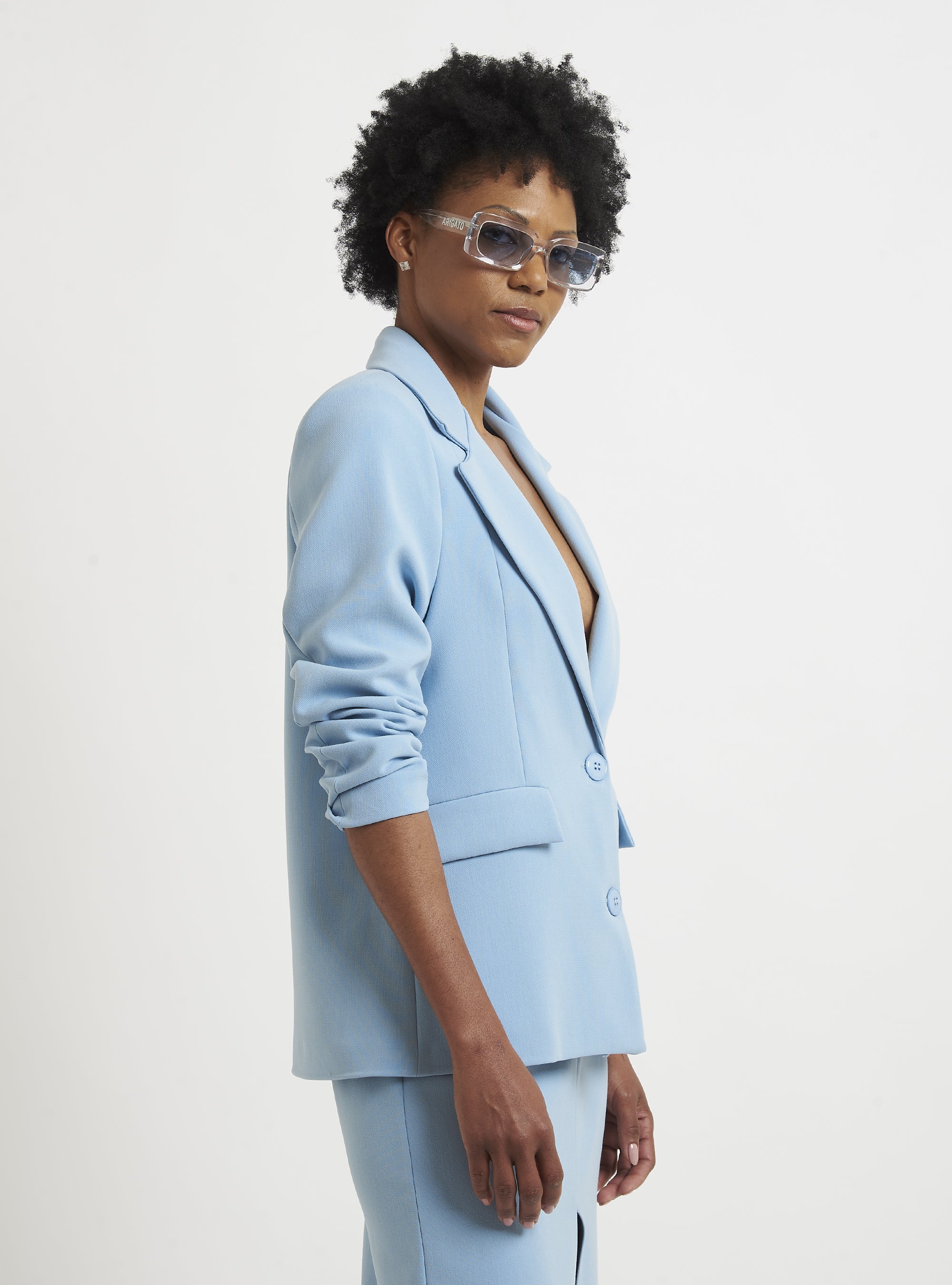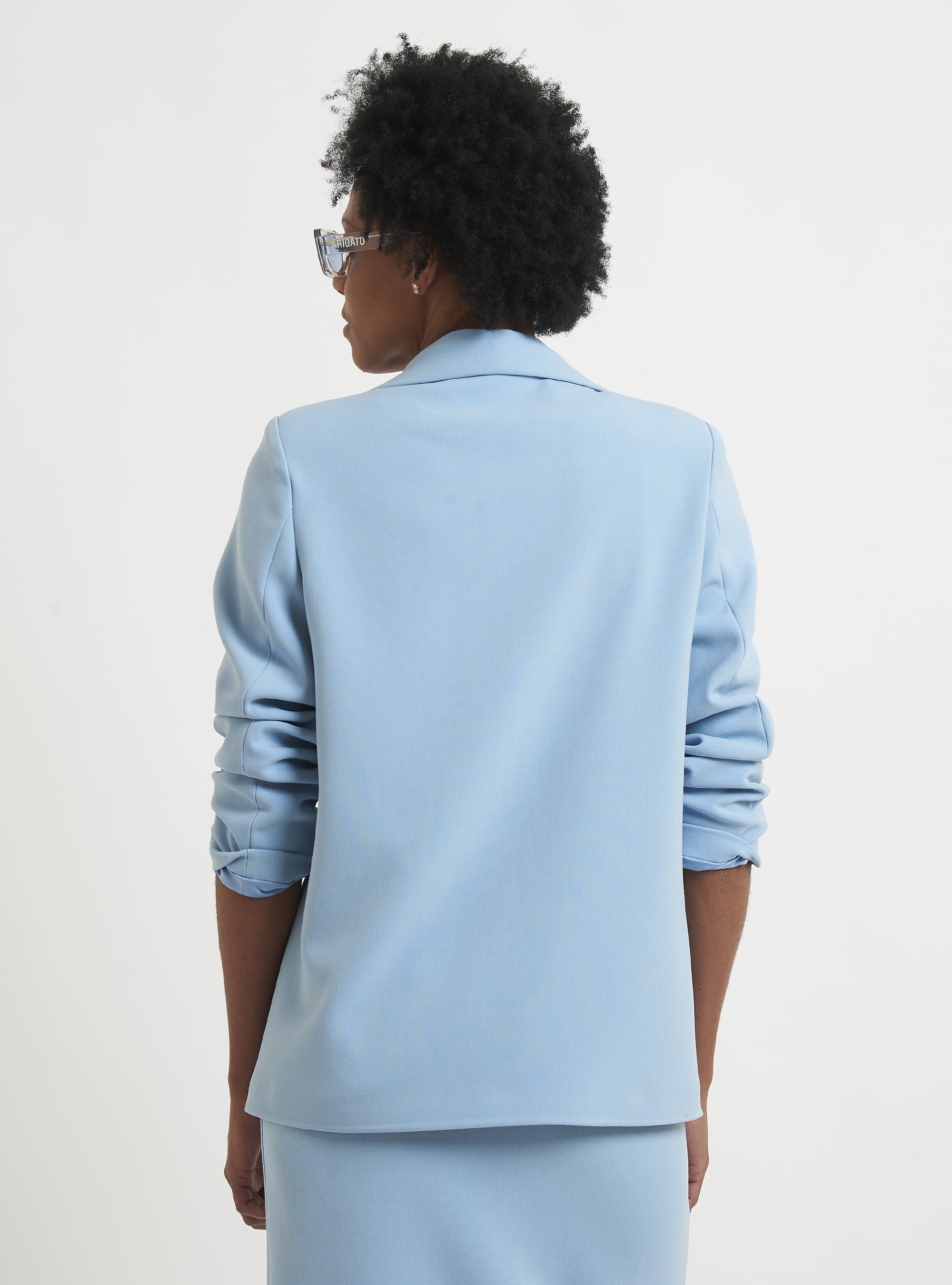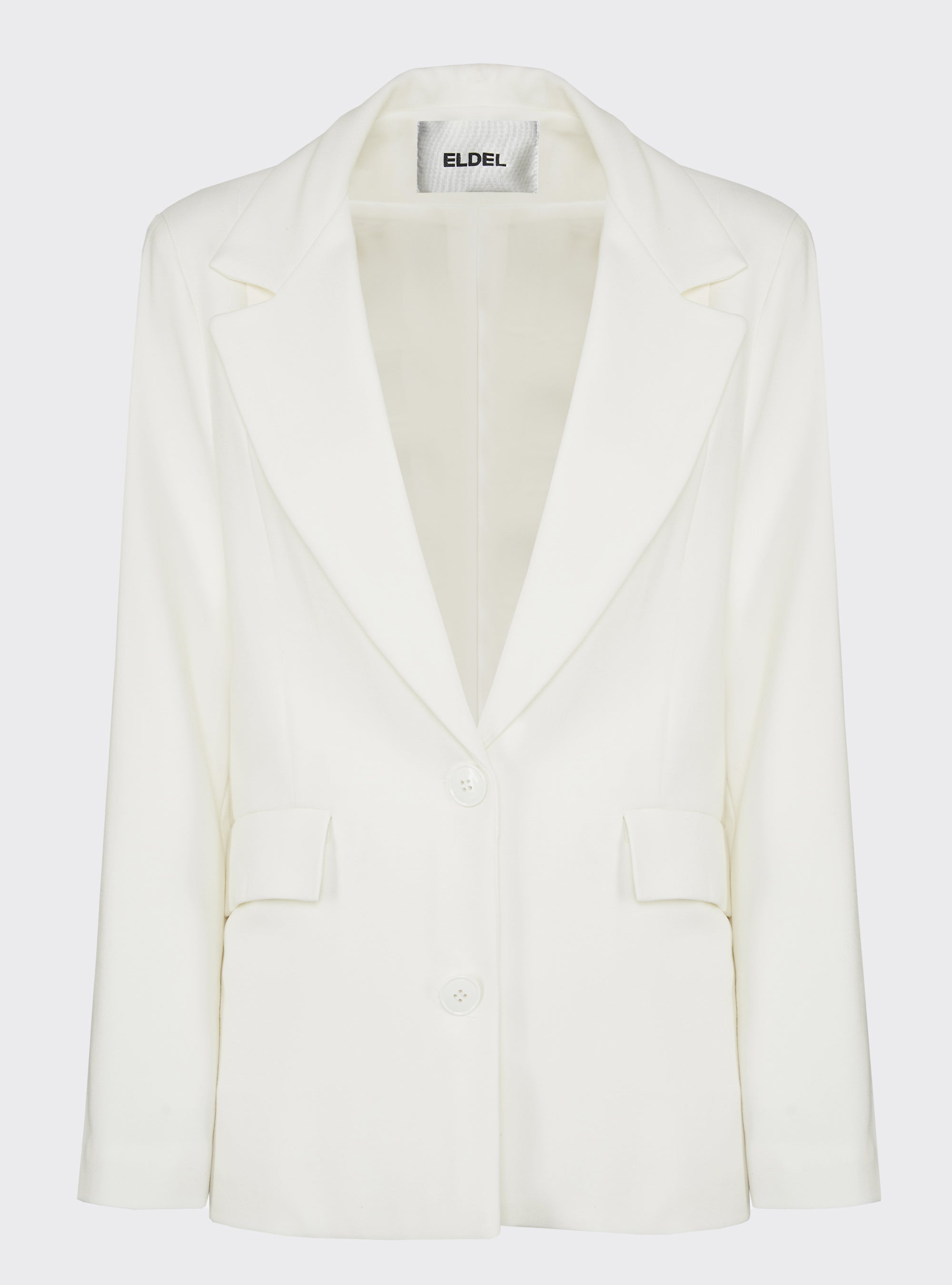 Single-breasted wool jacket. Boxy fit with peak collar and flap pockets. This versatile piece defines your unique style. Fits true to size.