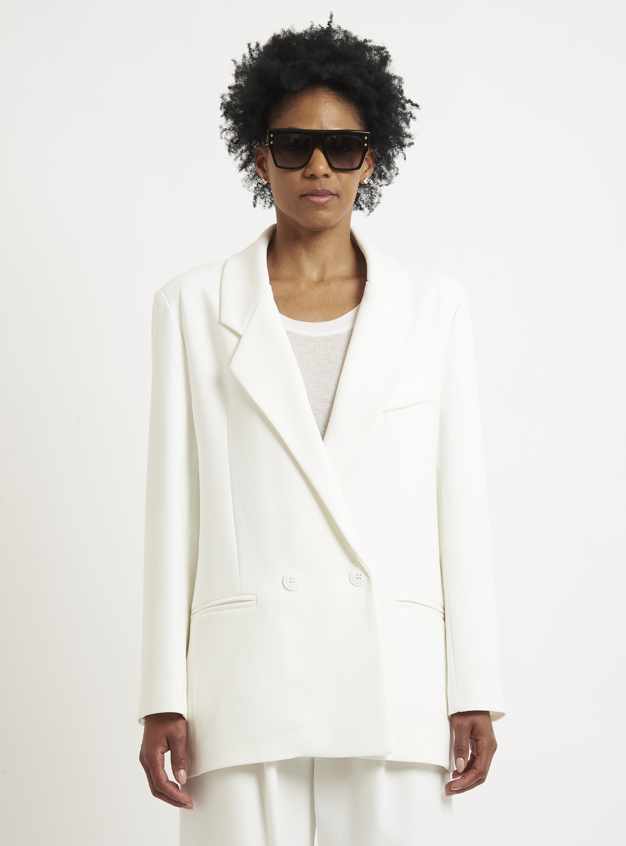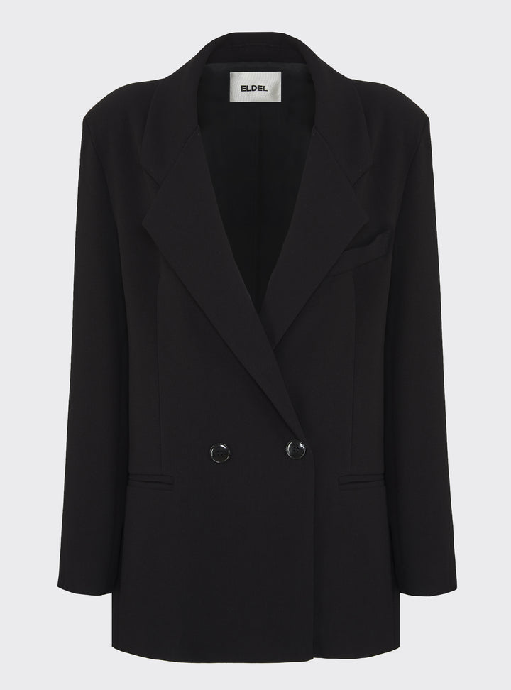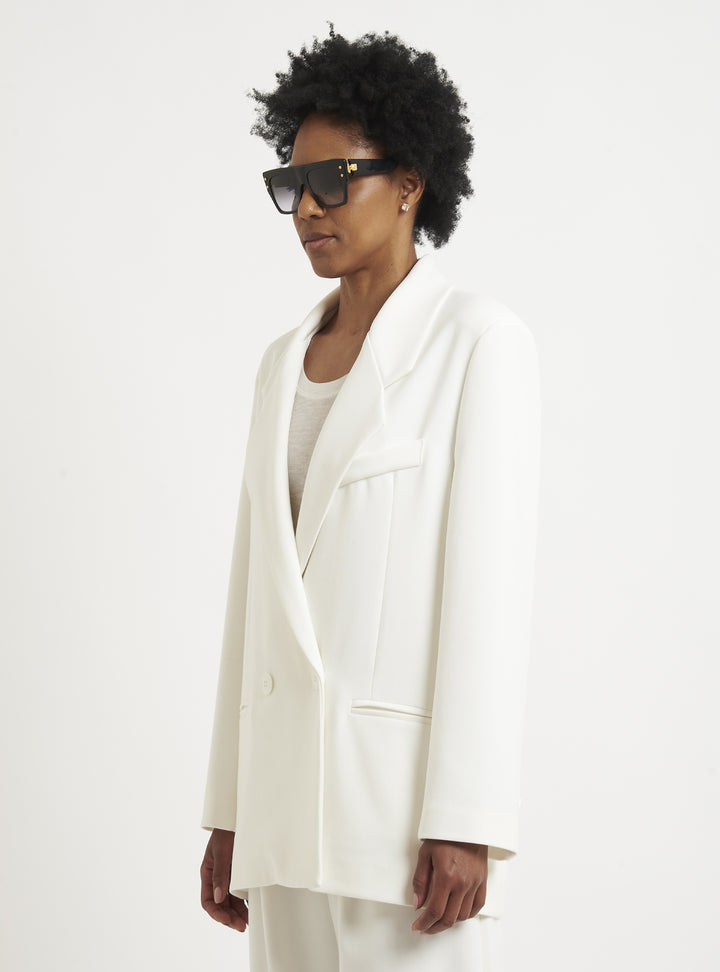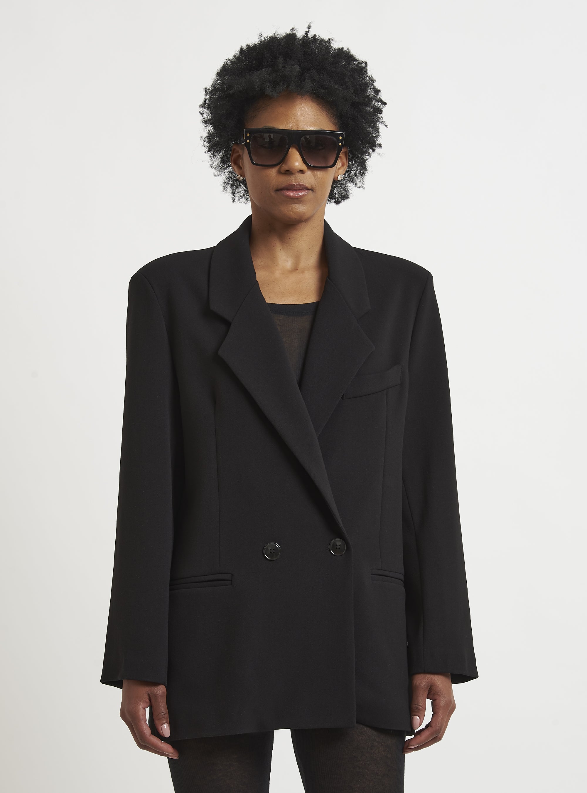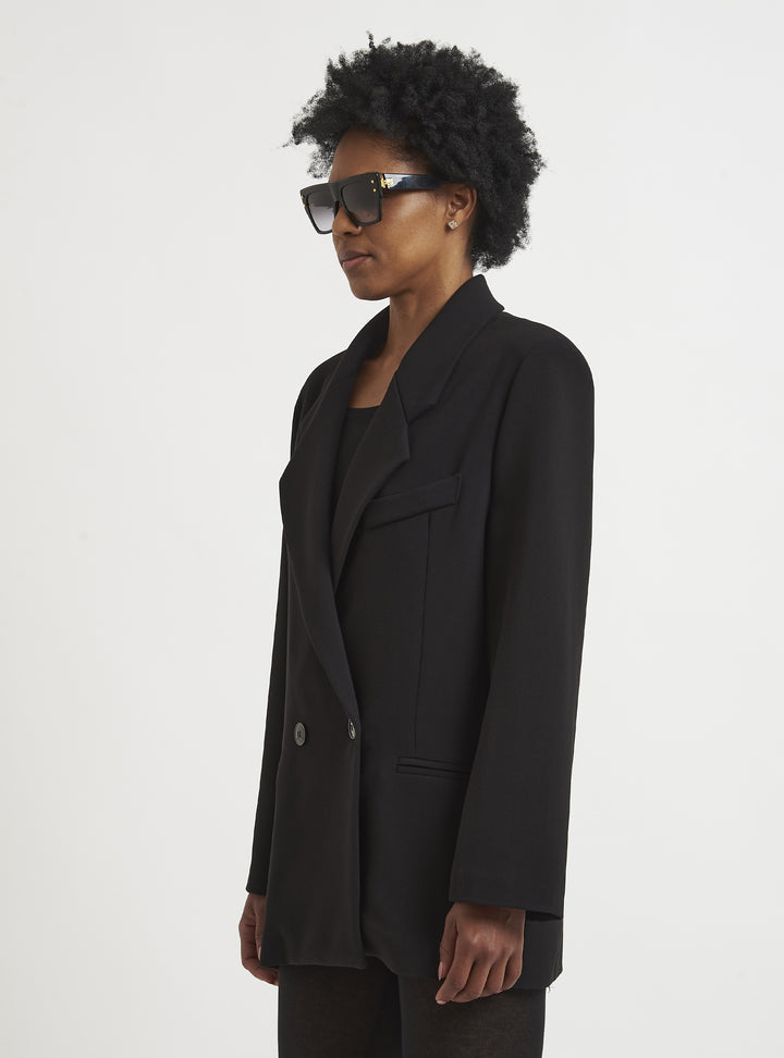 Classic wool blazer. Oversized double-breasted fit with peak lapels and welt pockets.