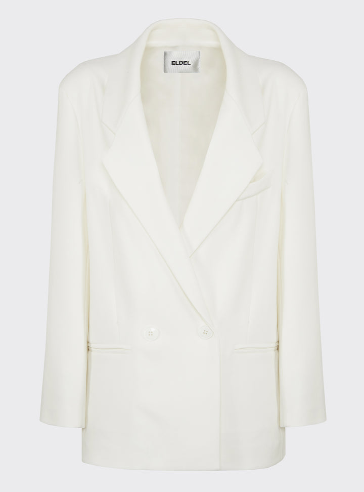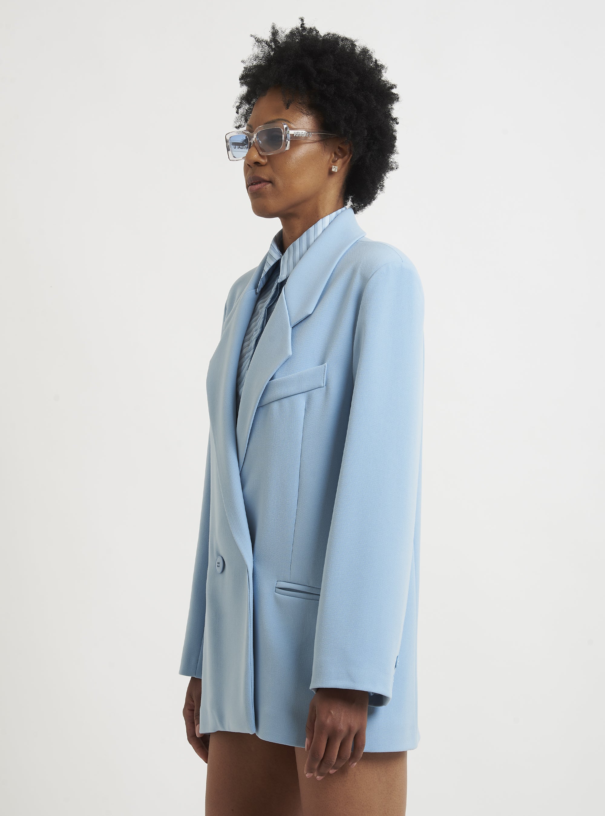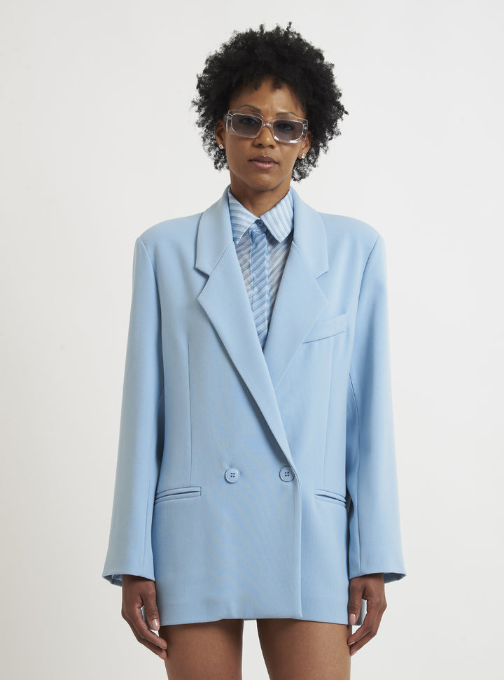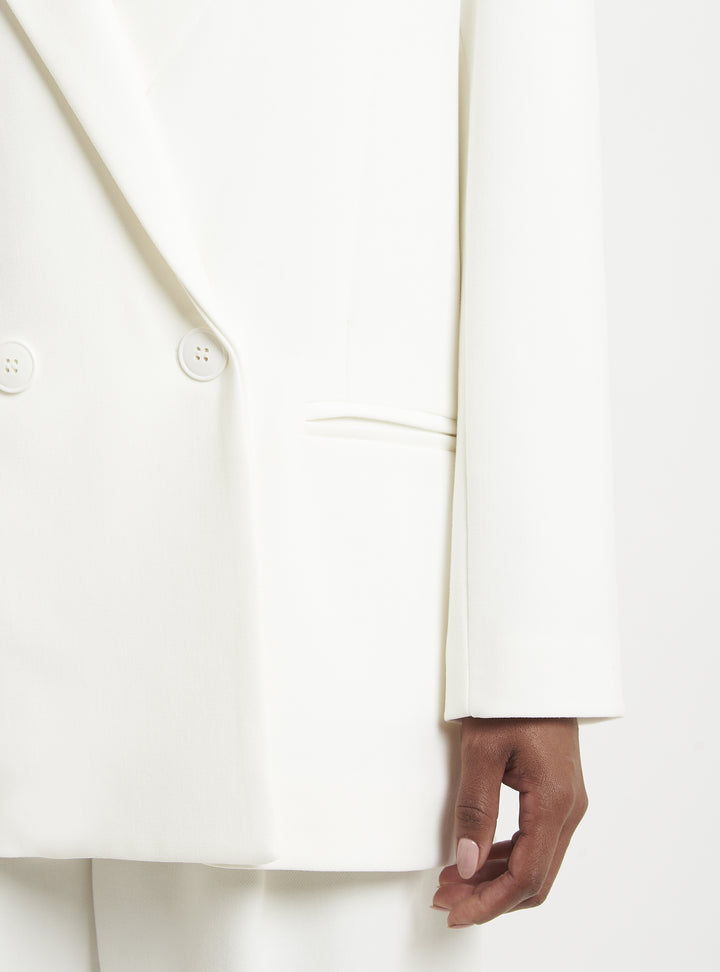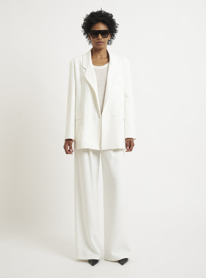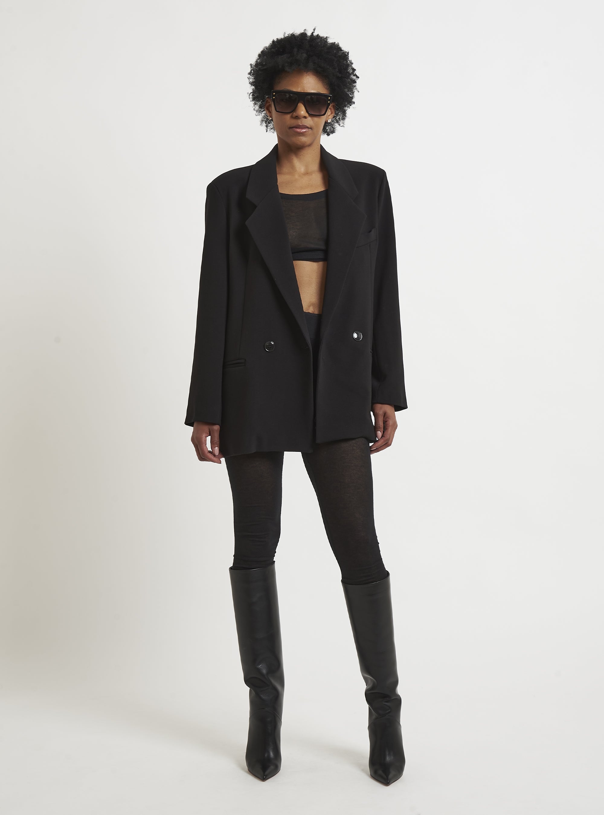 Classic wool blazer. Oversized double-breasted fit with peak lapels and welt pockets.