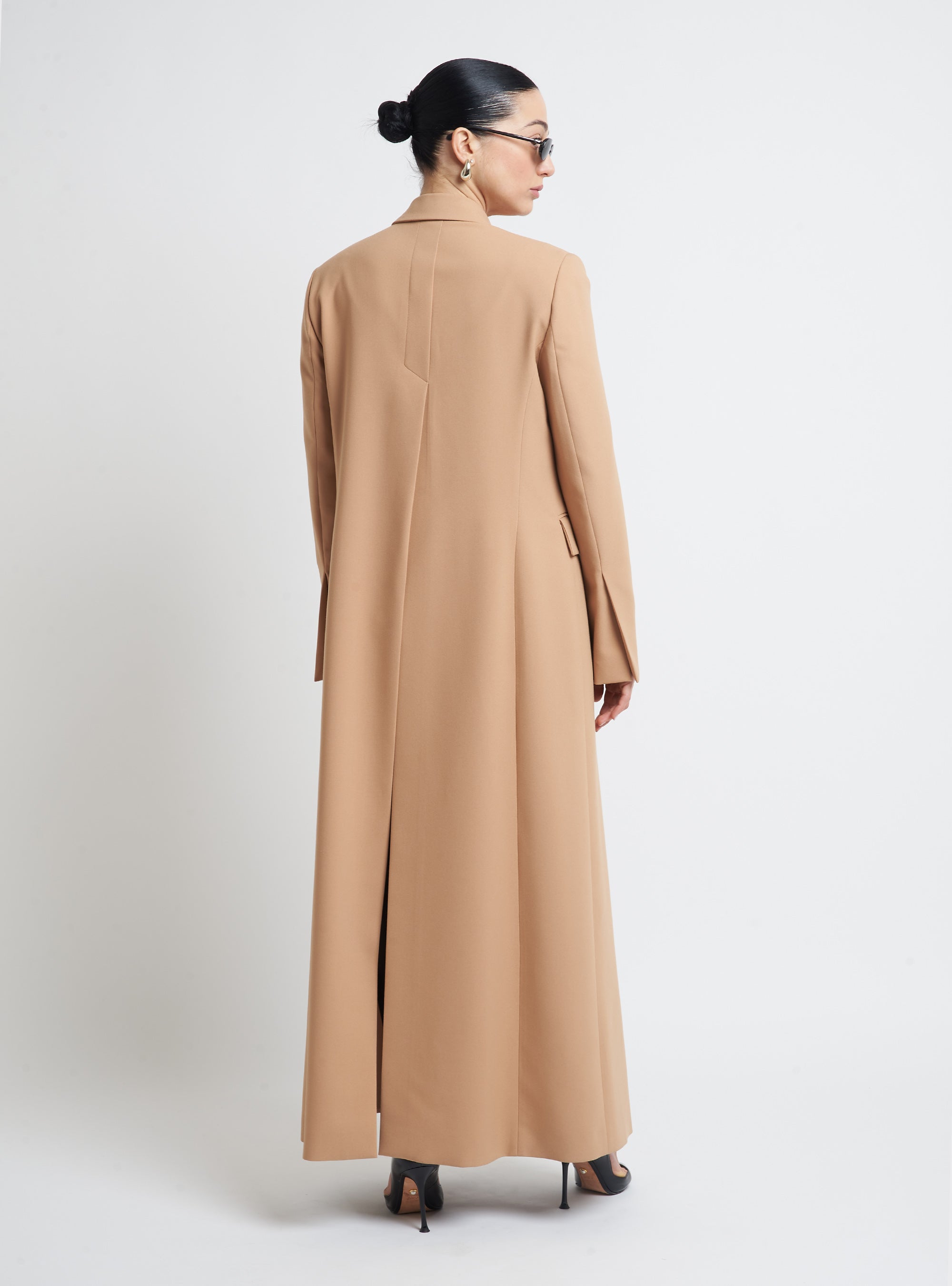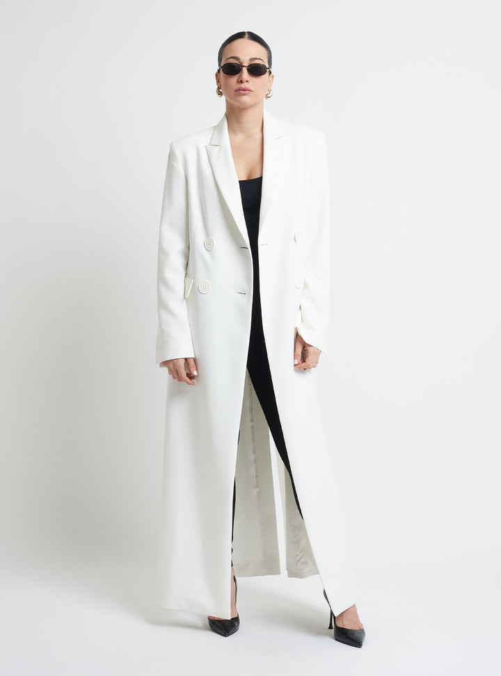 Long double-breasted coat, regular fit with mega slit along the back.