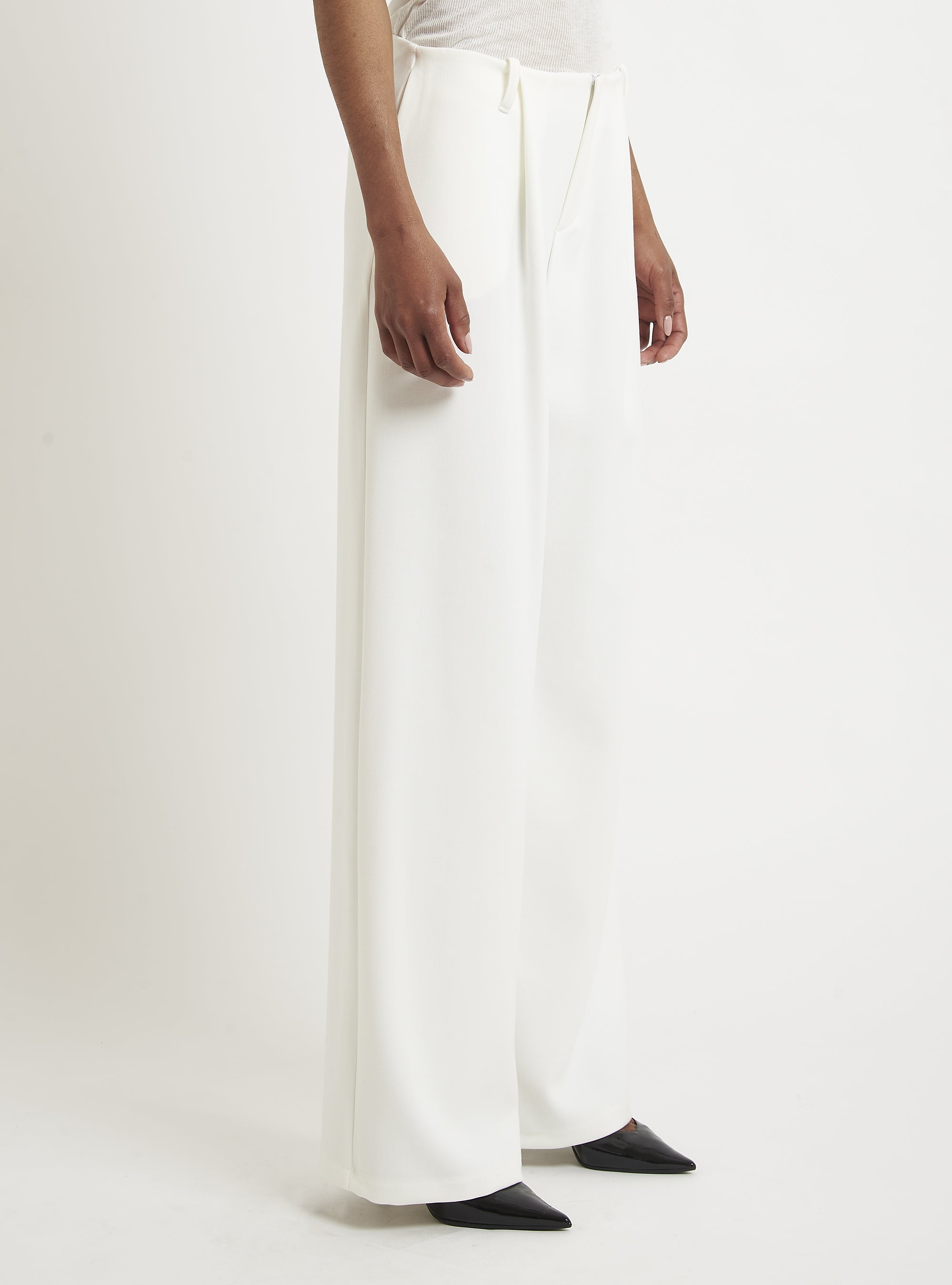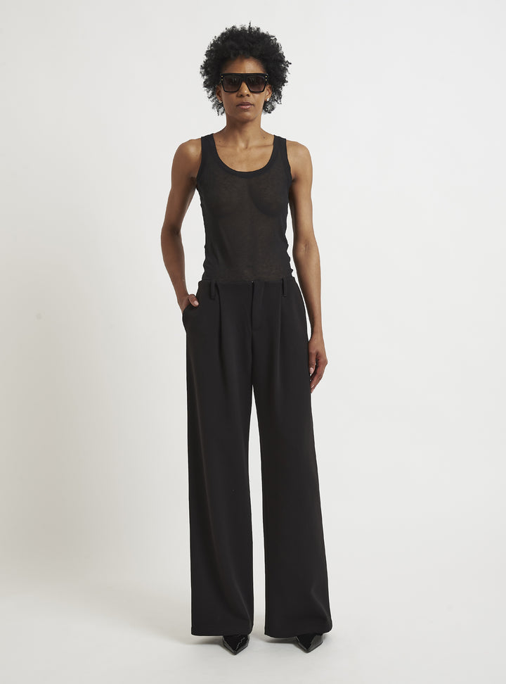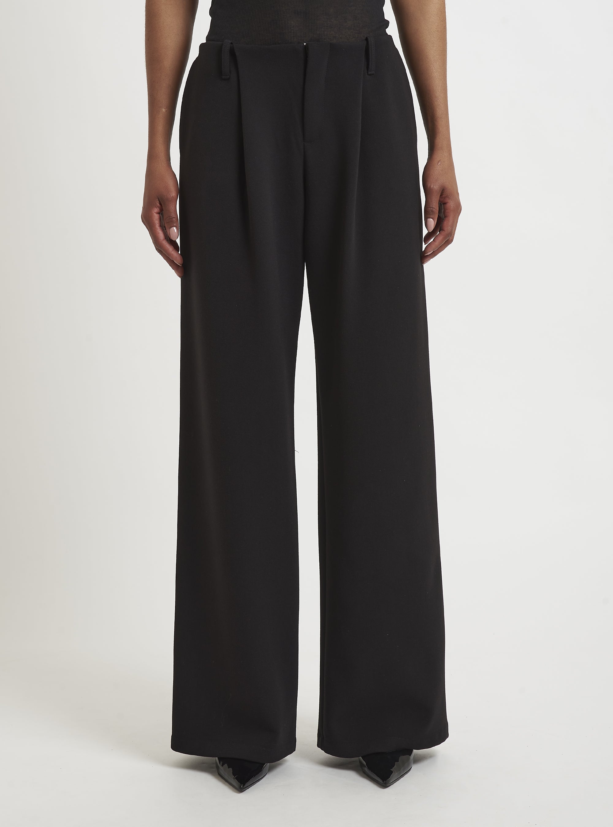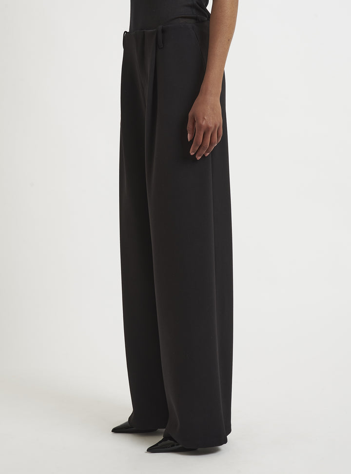 Low-waisted trousers with front pleats and side pocket. Pair with DOUBLE-BREASTED BOX BLAZER. Oversized fit.