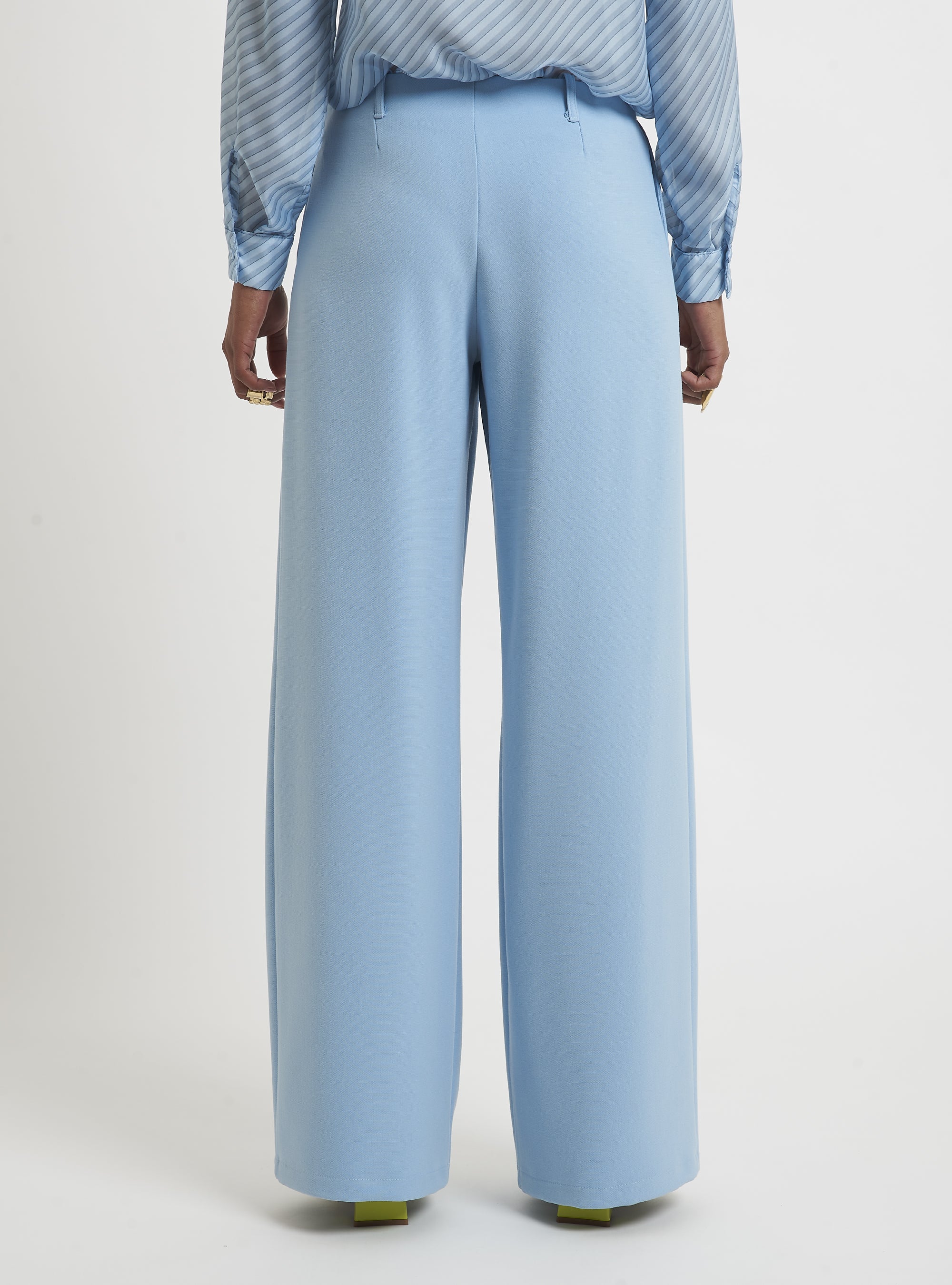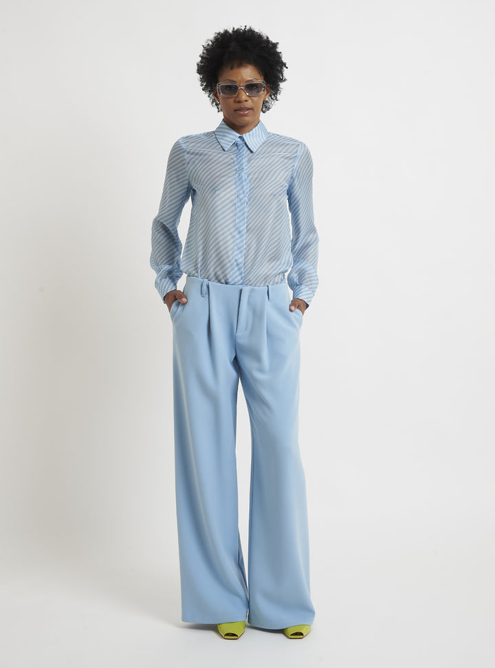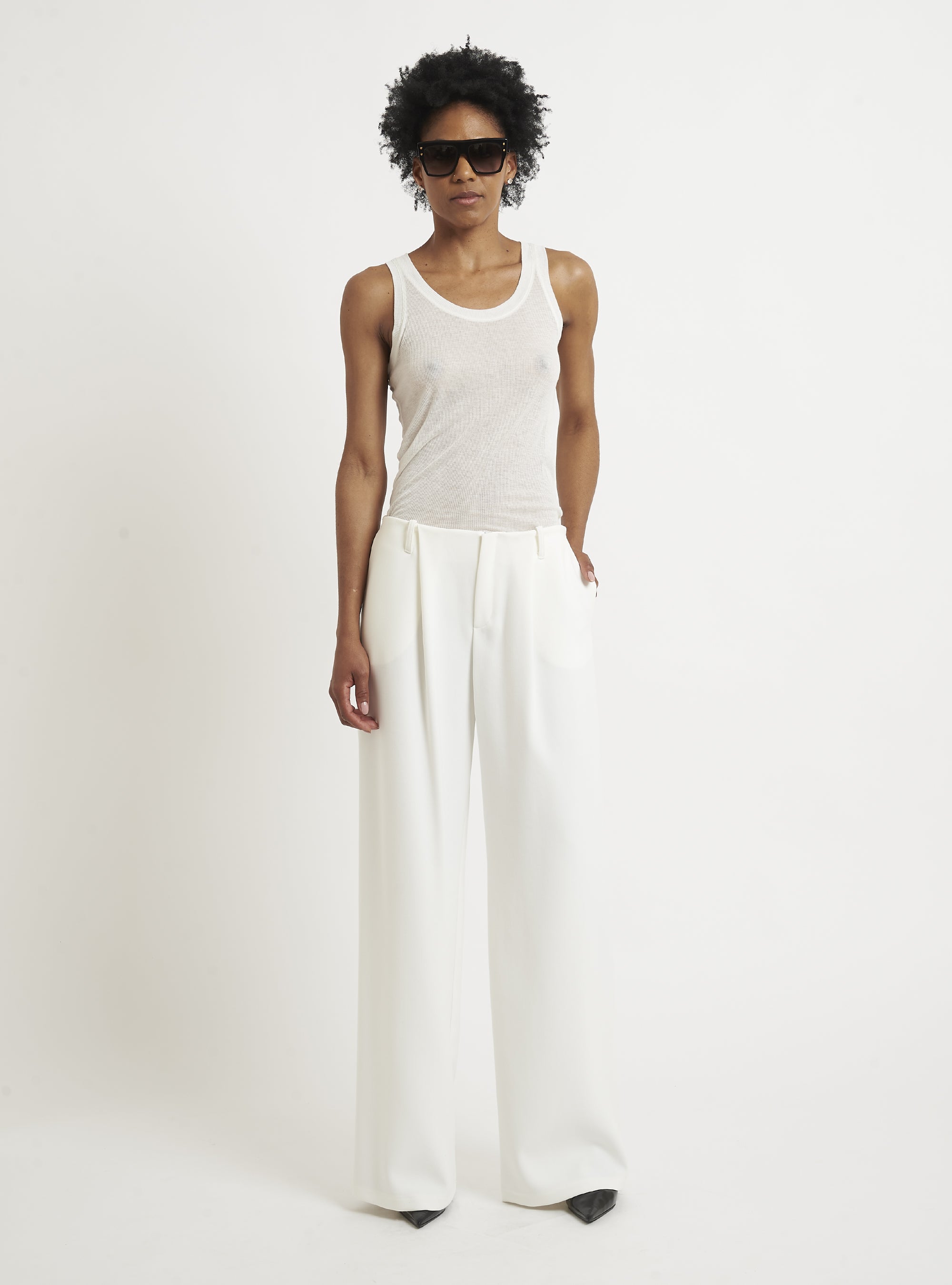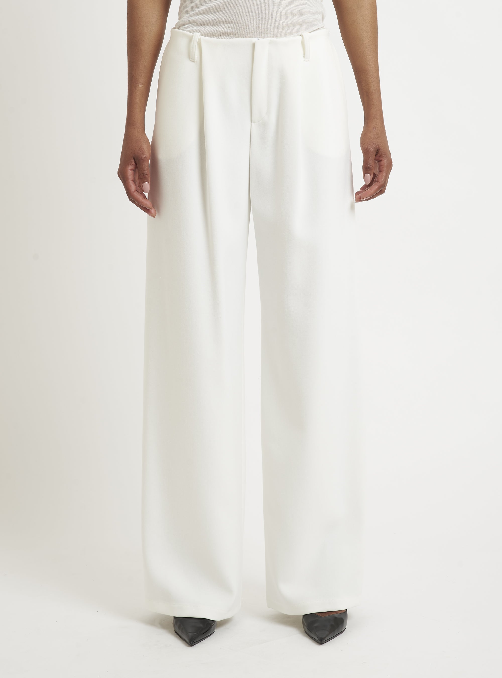 Low-waisted trousers with front pleats and side pocket. Pair with DOUBLE-BREASTED BOX BLAZER. Oversized fit.