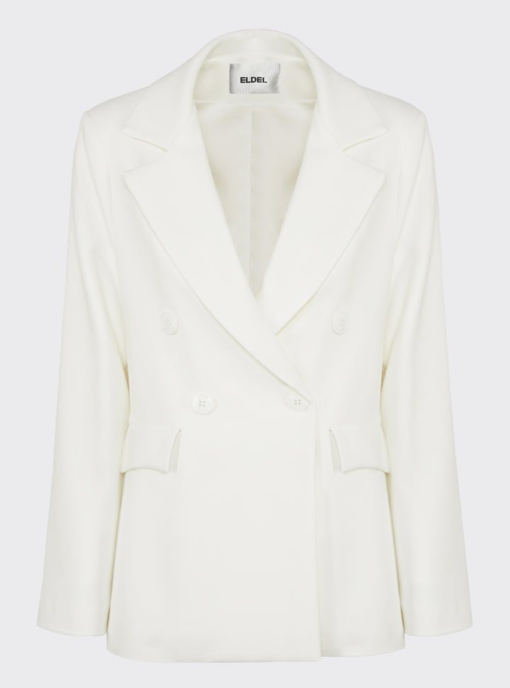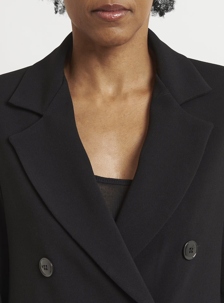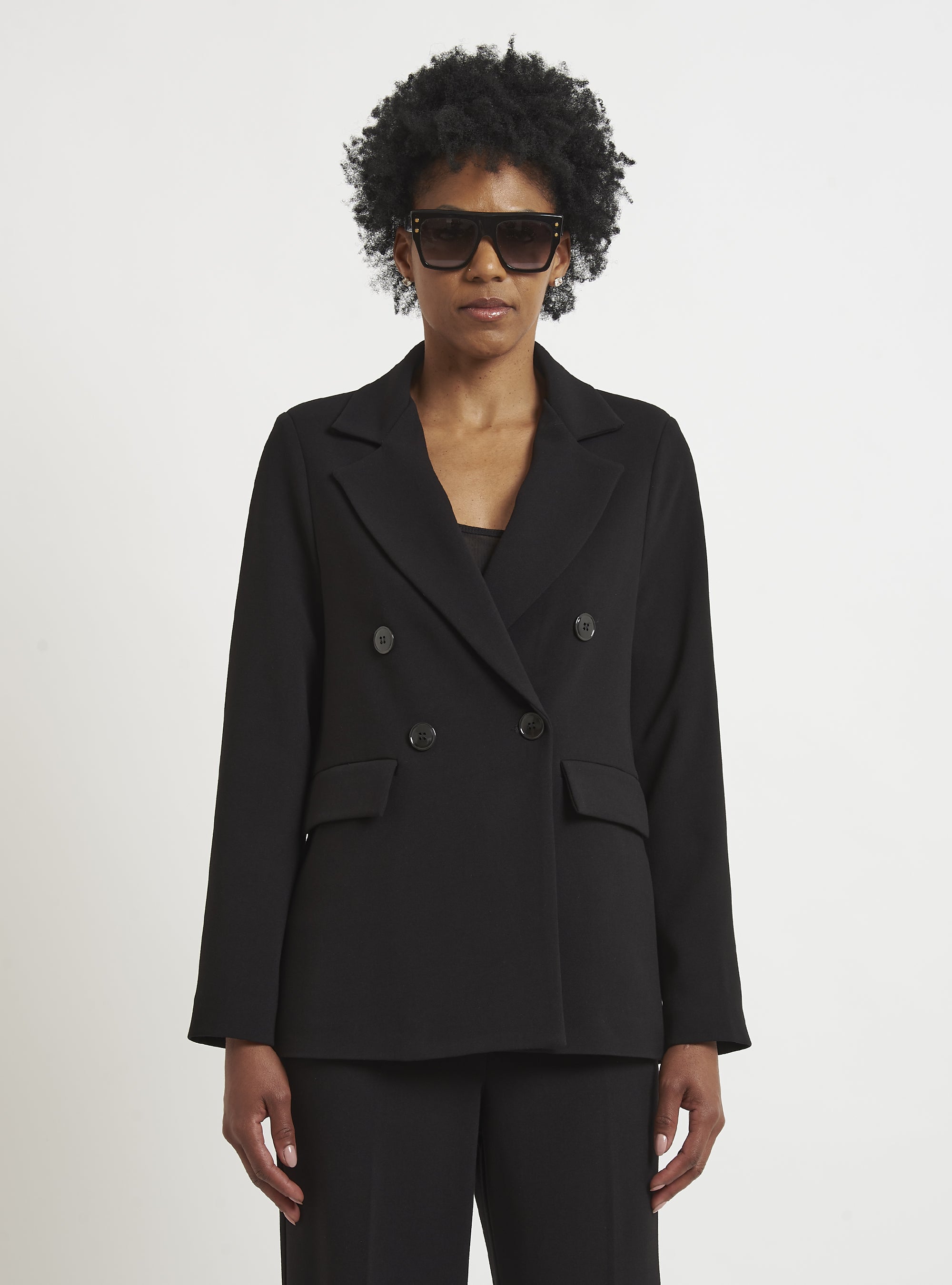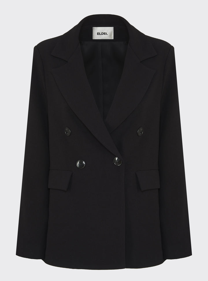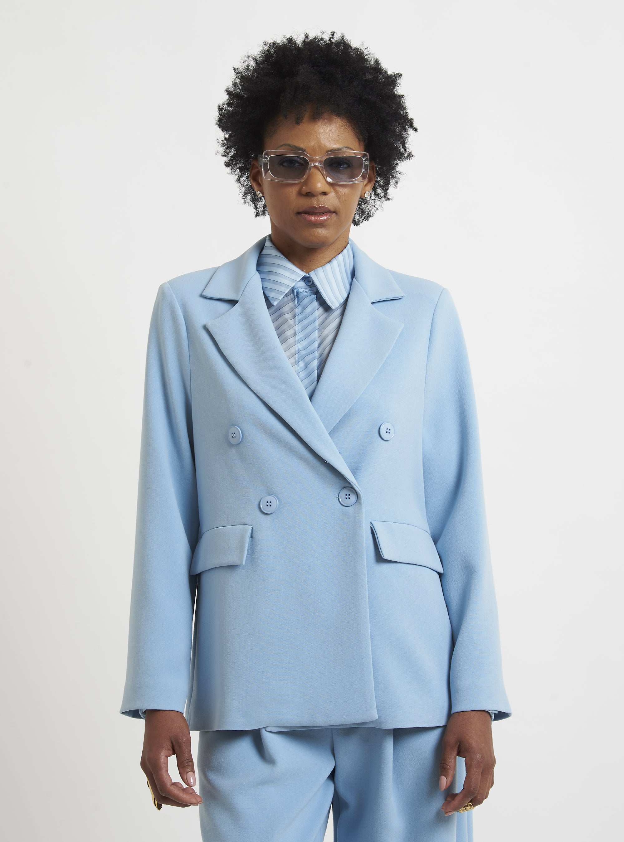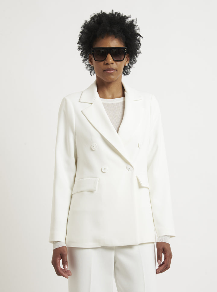 Double-breasted wool jacket. Boxy fit with peak collar and flap pockets. Versatile and suitable for any occasion. Fits true to size.