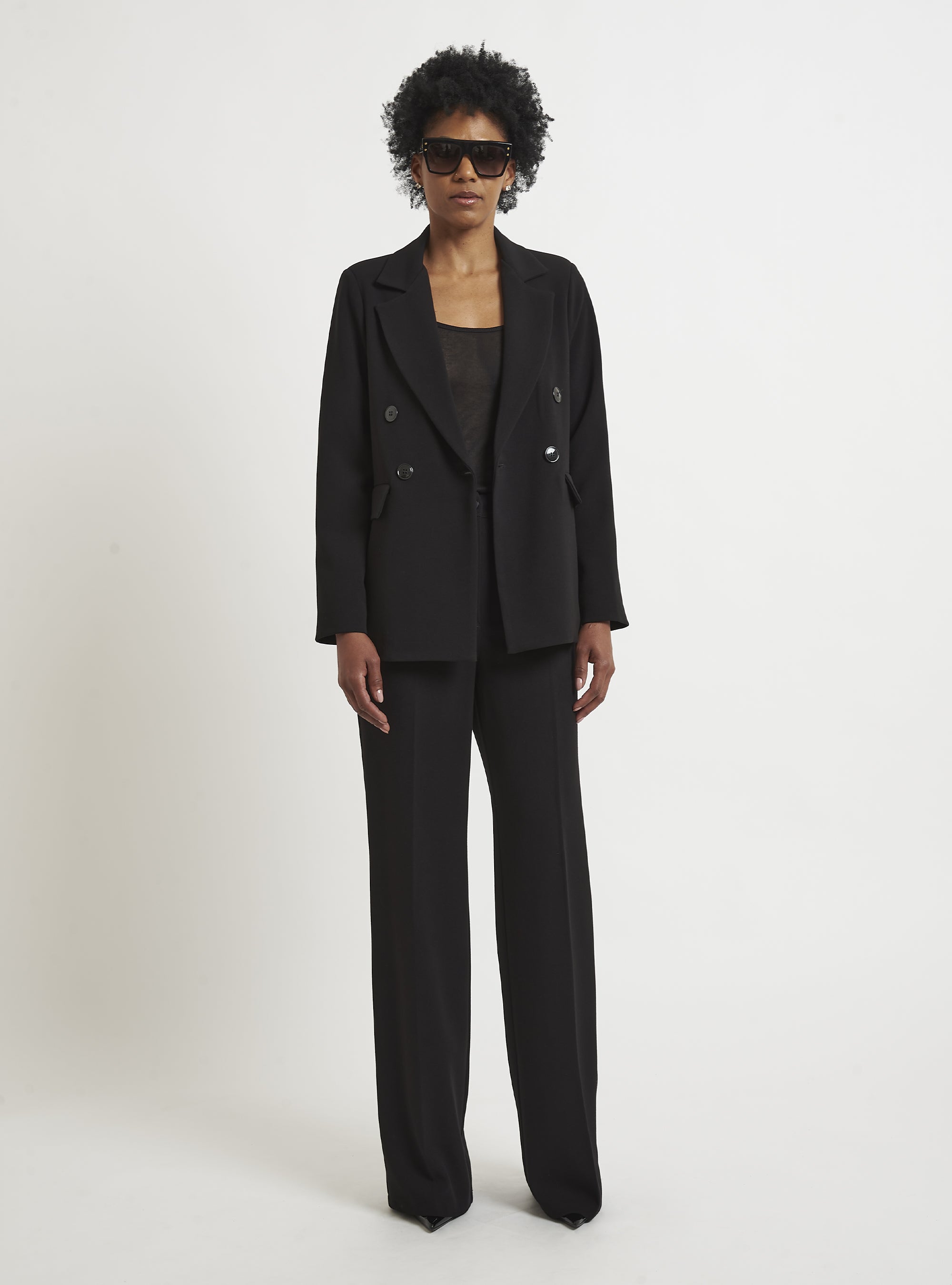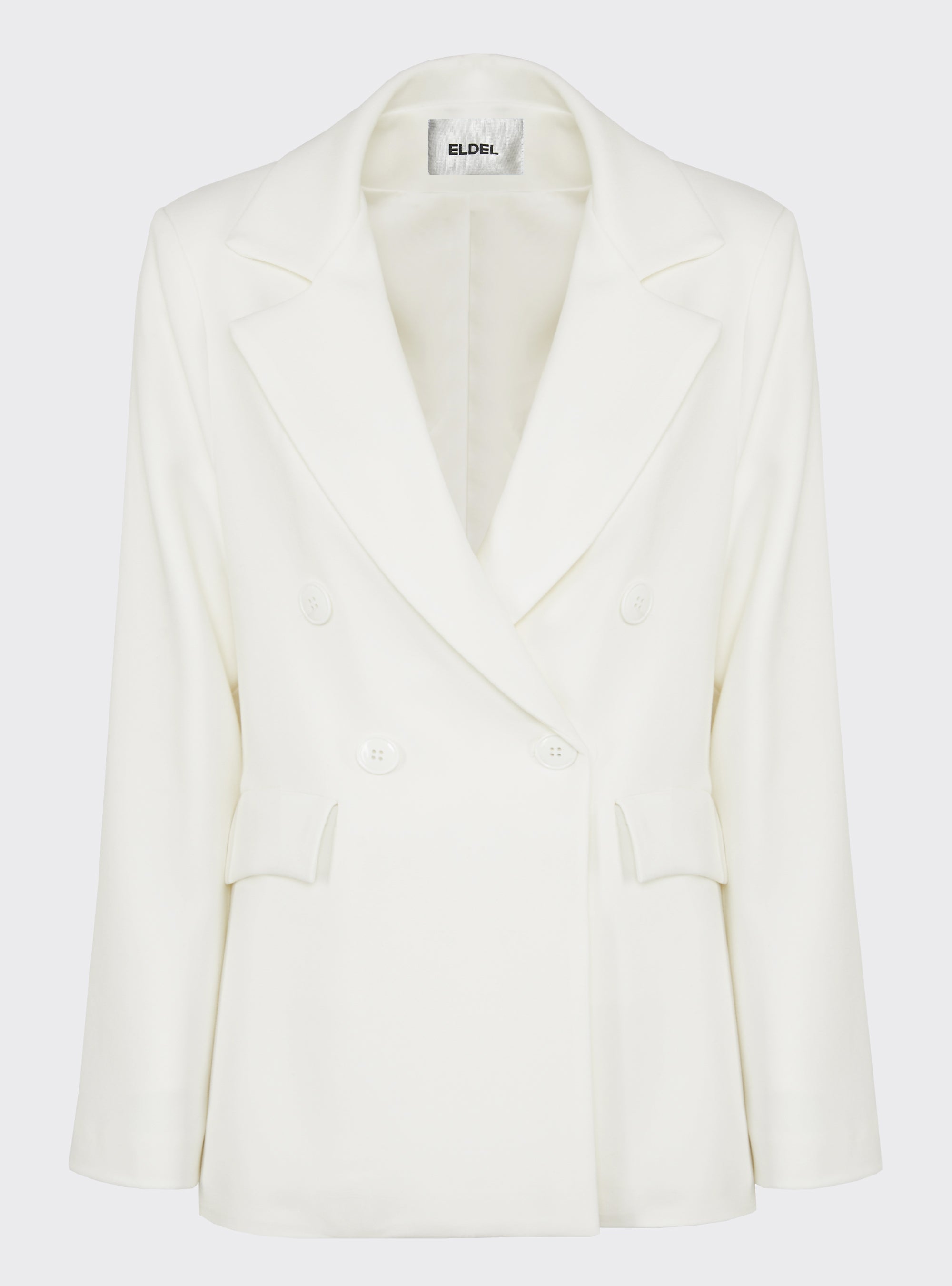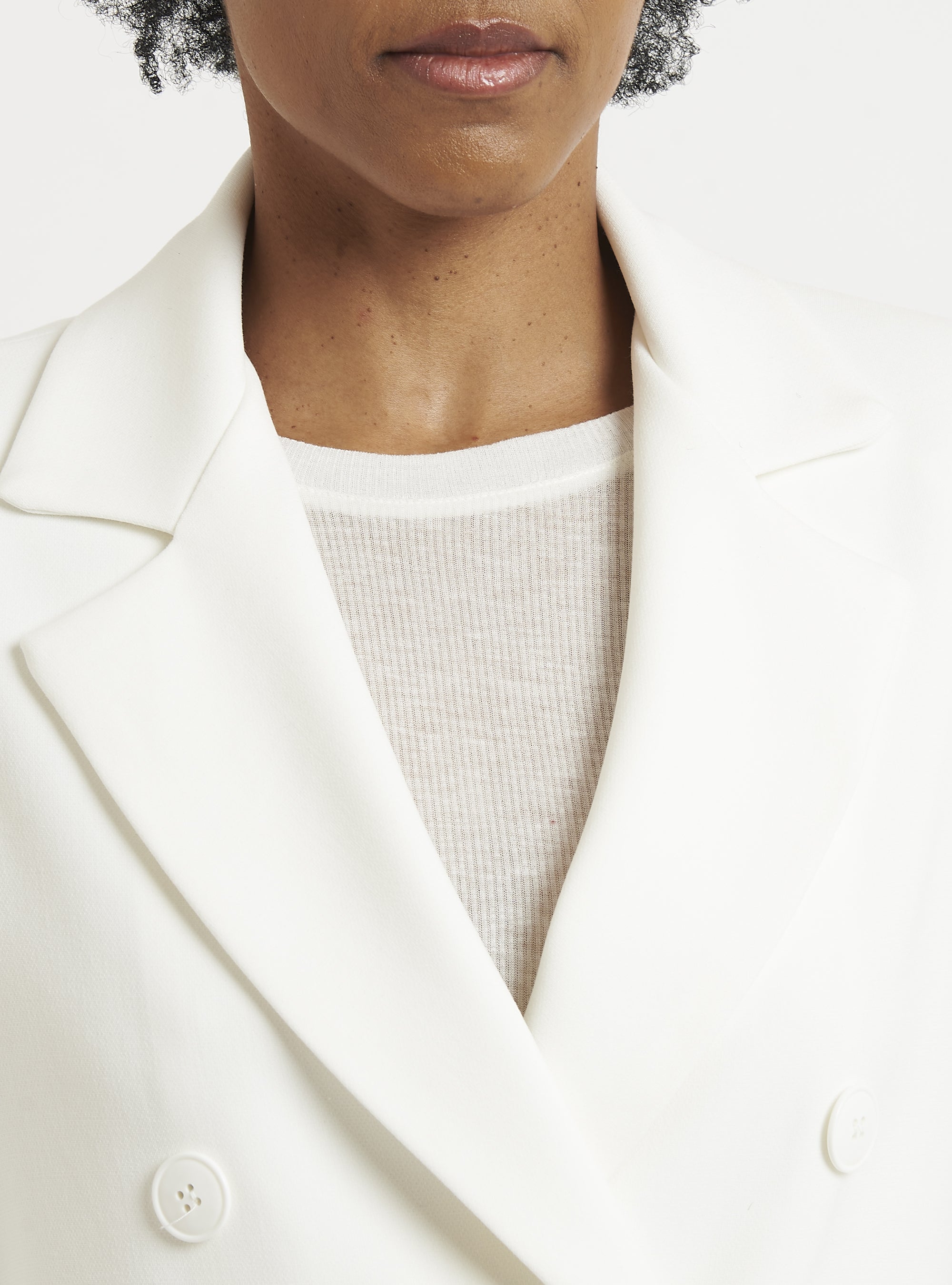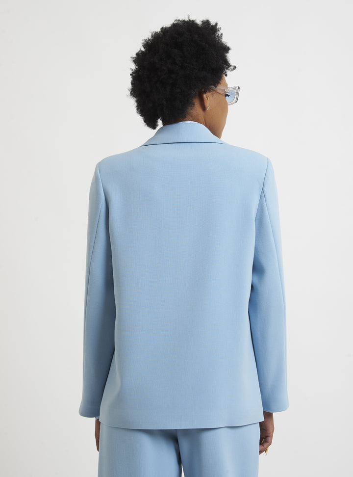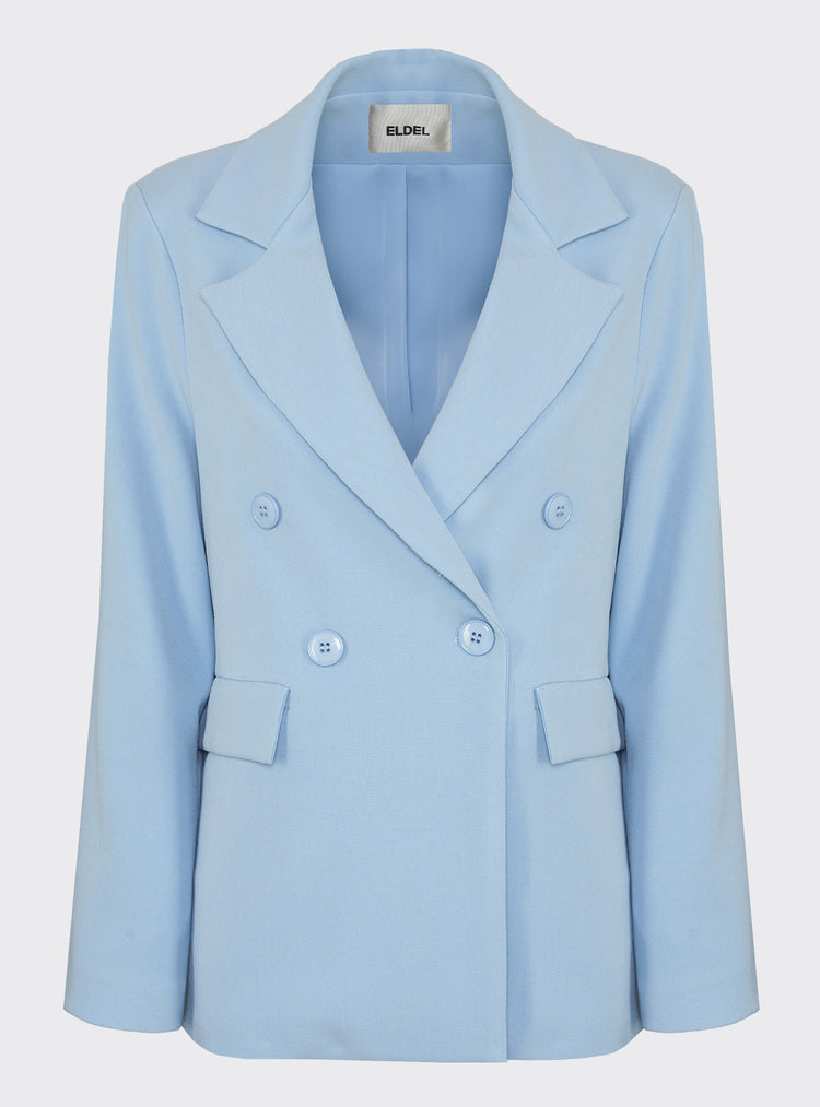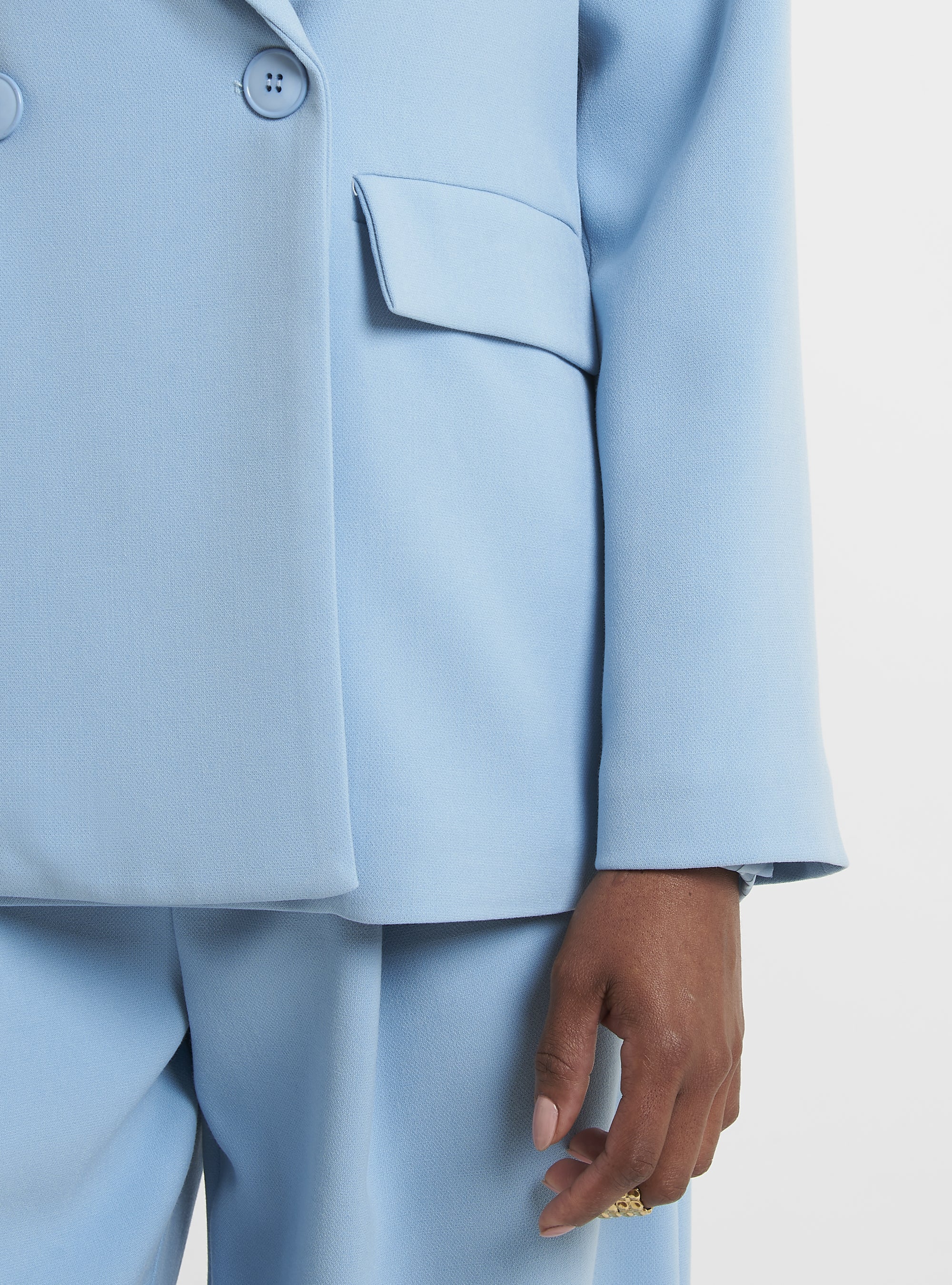 Double-breasted wool jacket. Boxy fit with peak collar and flap pockets. Versatile and suitable for any occasion. Fits true to size.