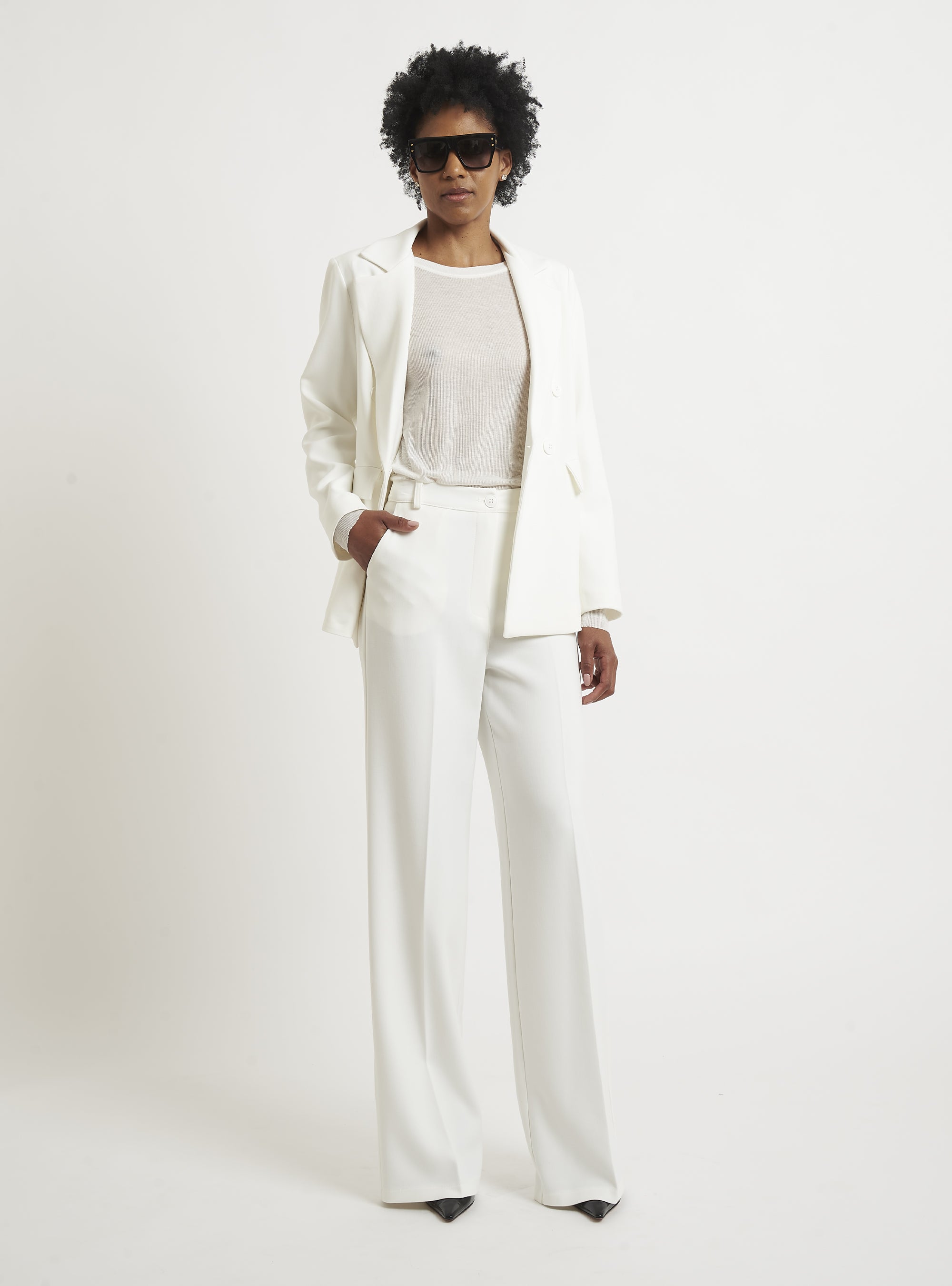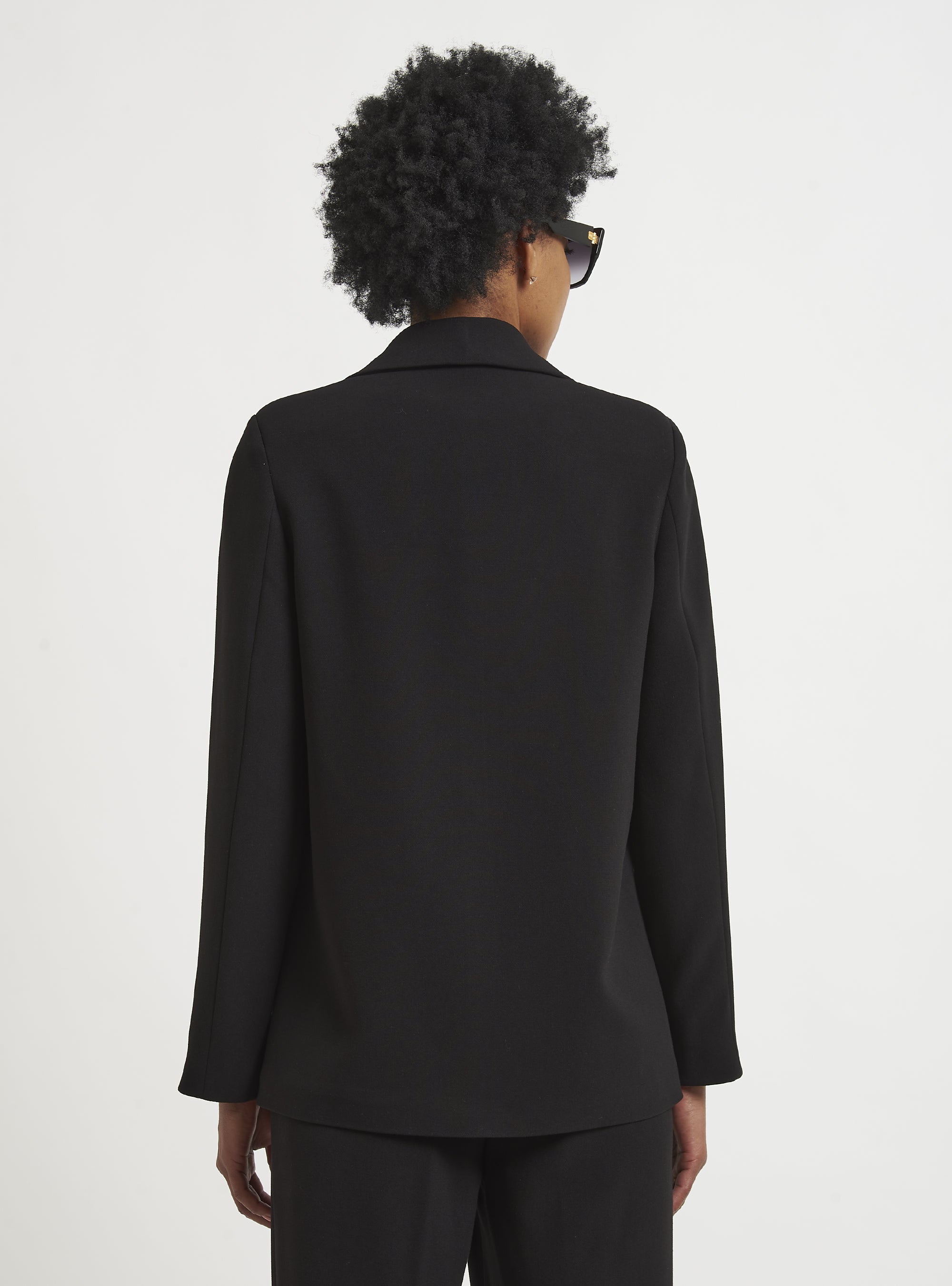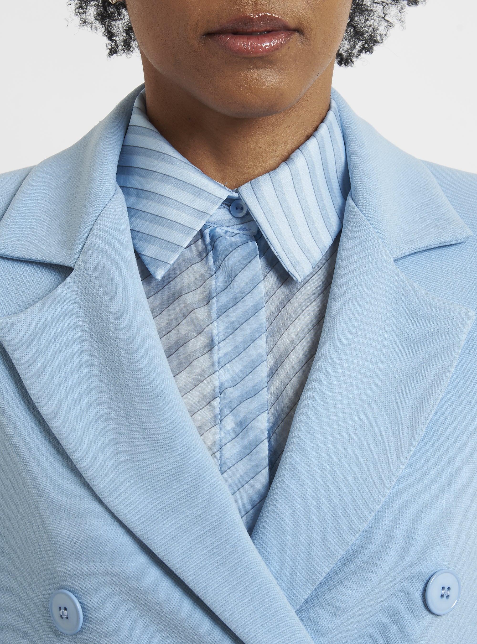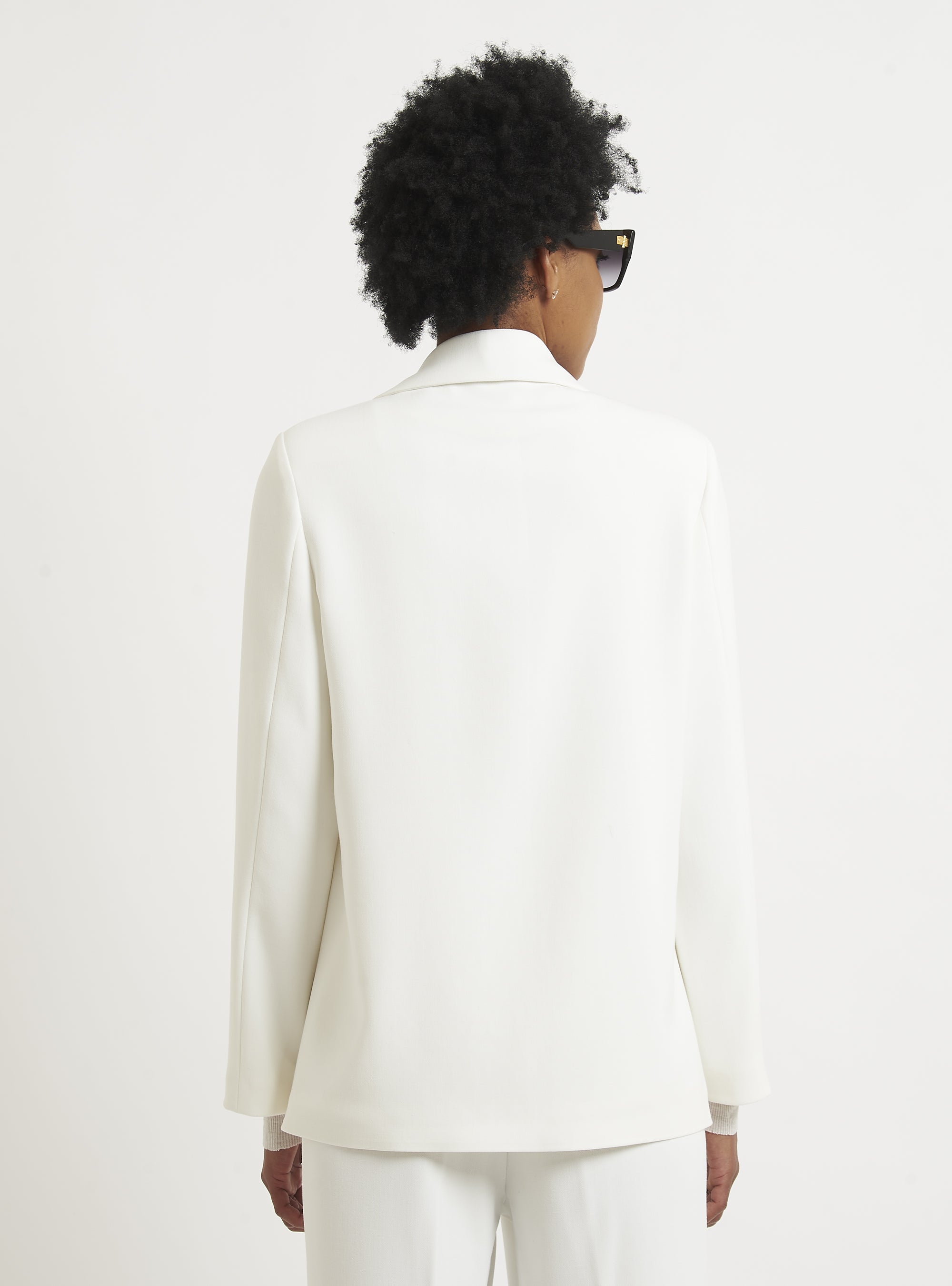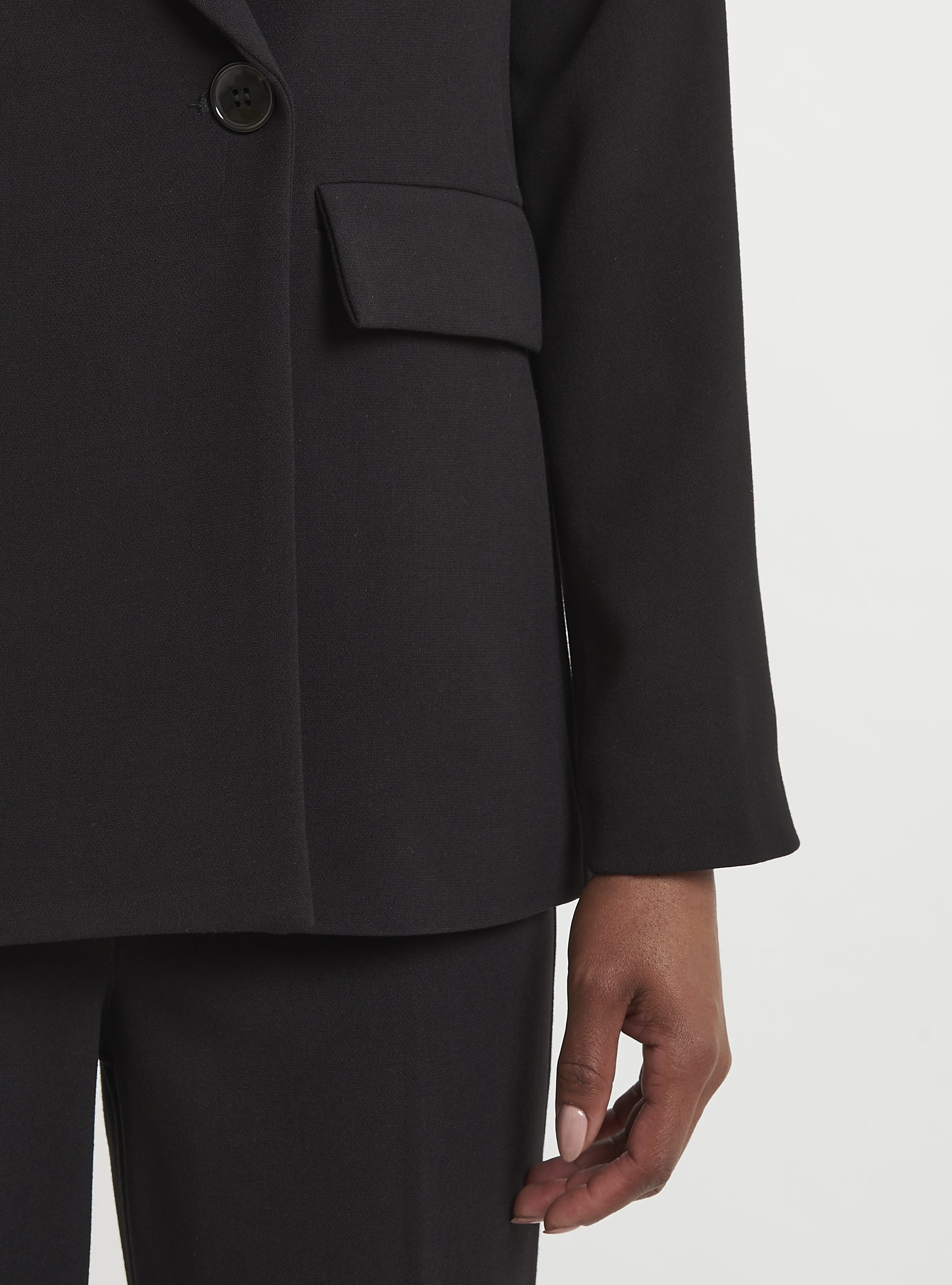 Double-breasted wool jacket. Boxy fit with peak collar and flap pockets. Versatile and suitable for any occasion. Fits true to size.