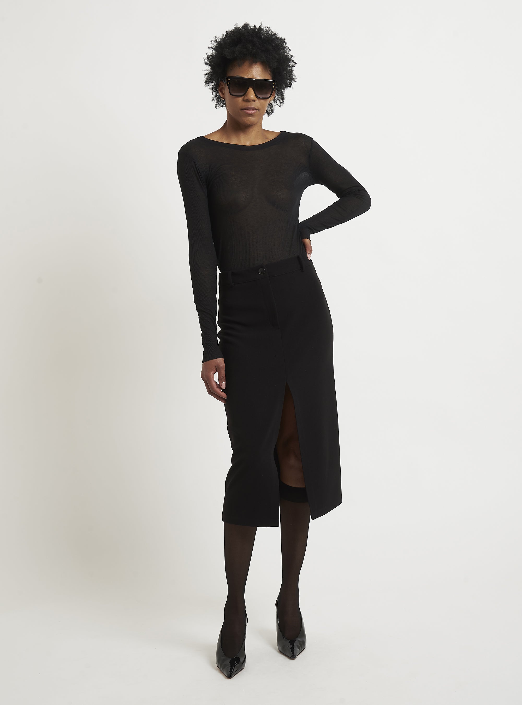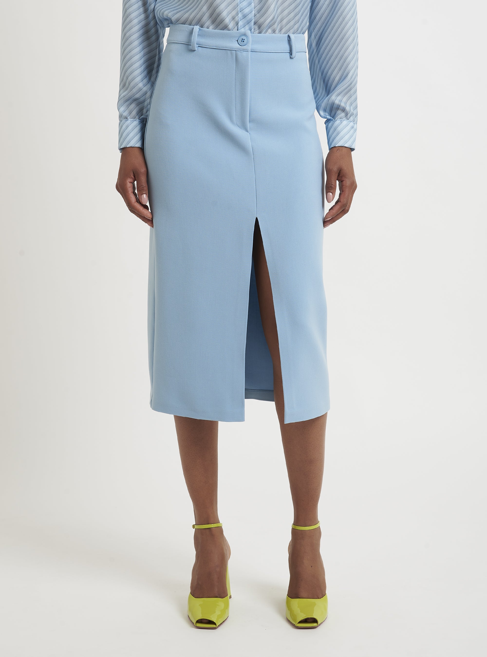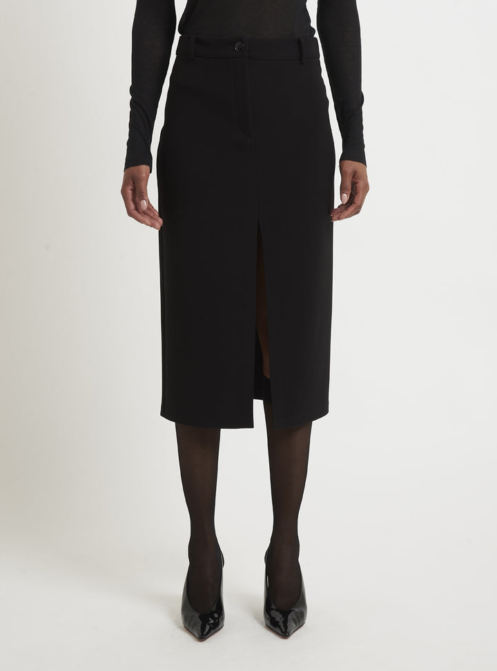 Wool pencil skirt with front slit. Elegant and versatile. True to size fit.