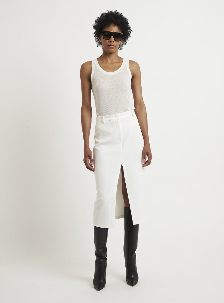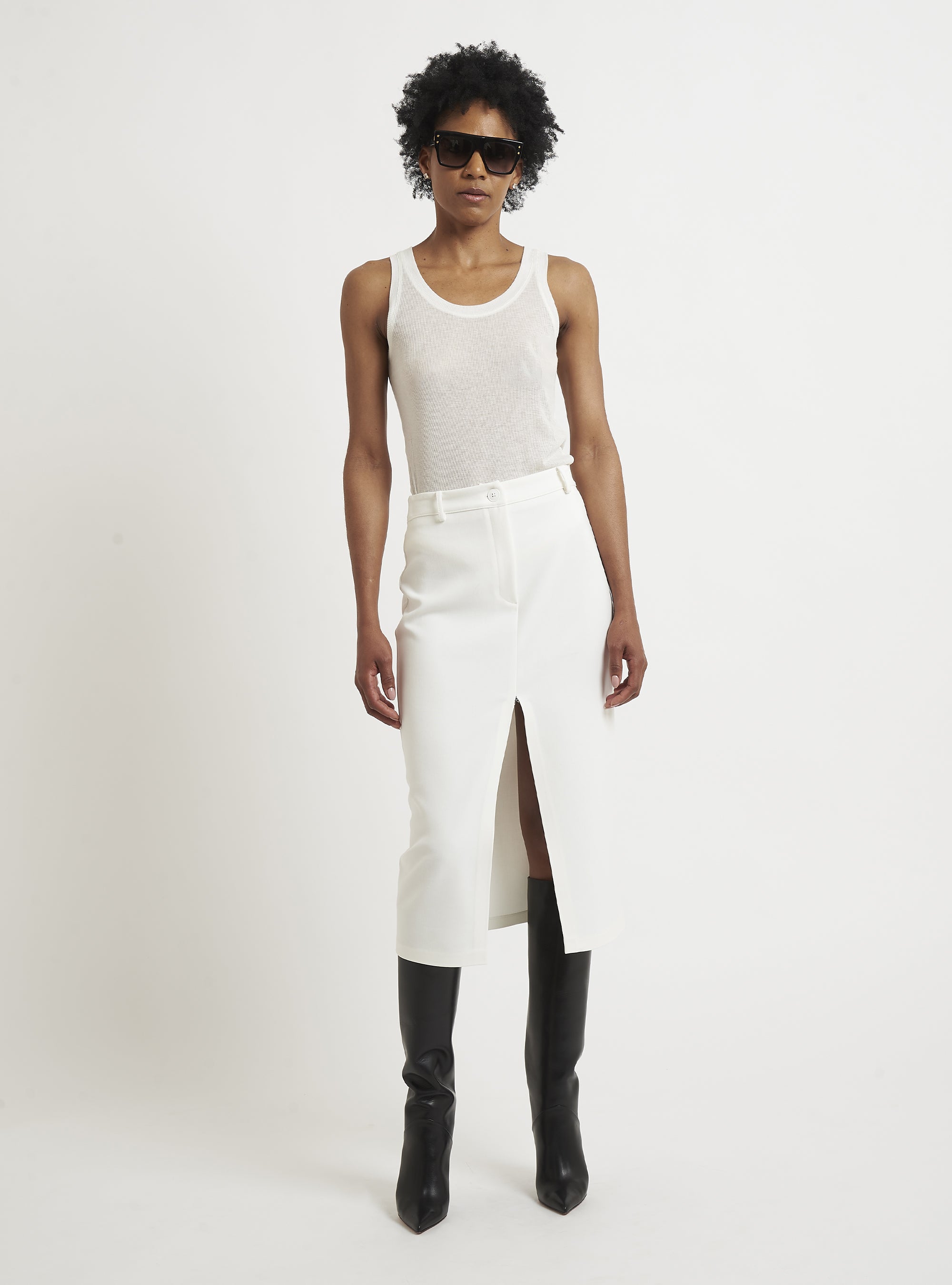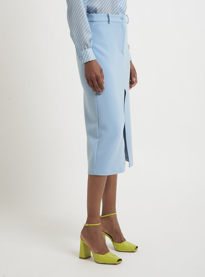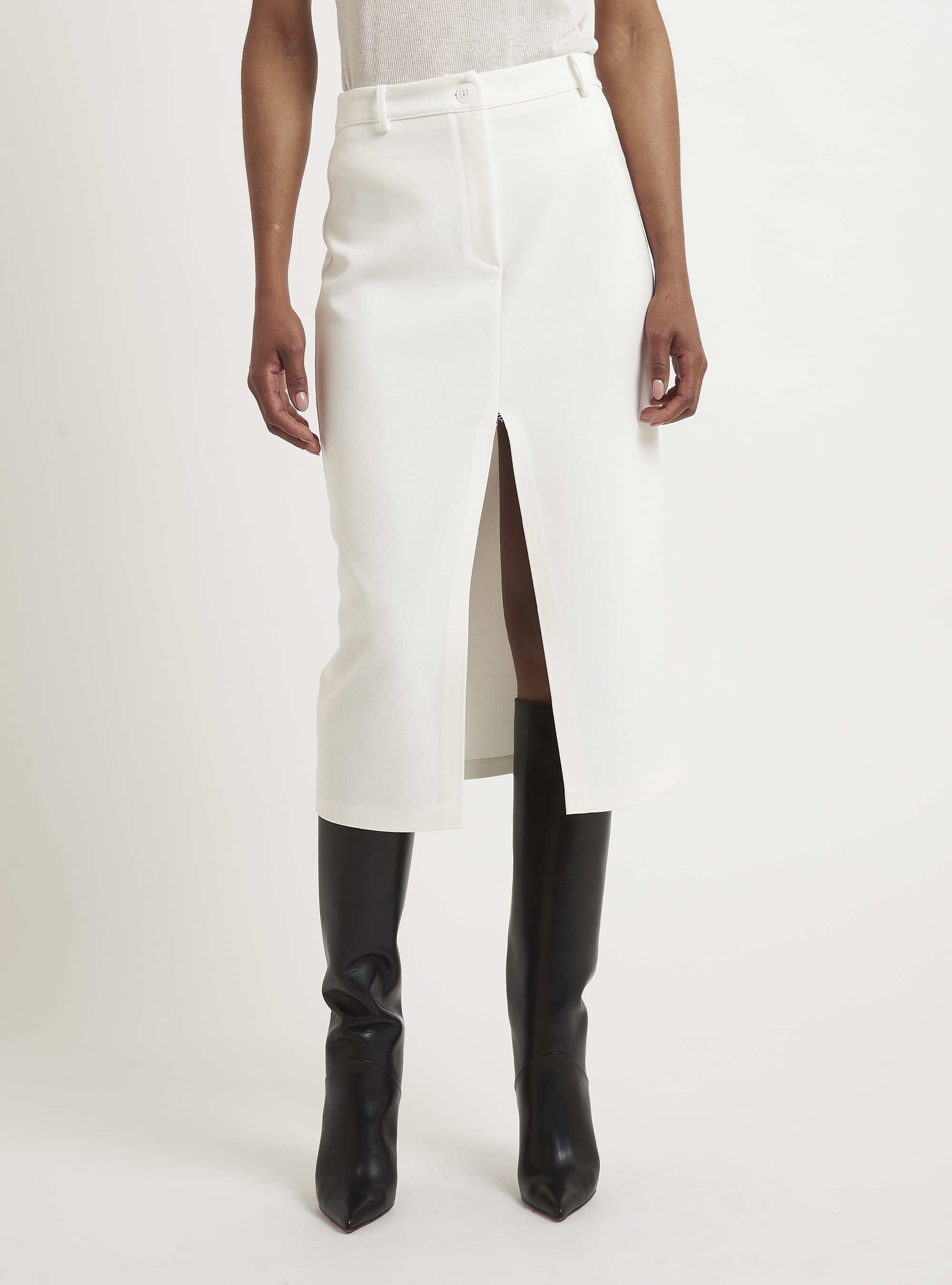 Wool pencil skirt with front slit. Elegant and versatile. True to size fit.