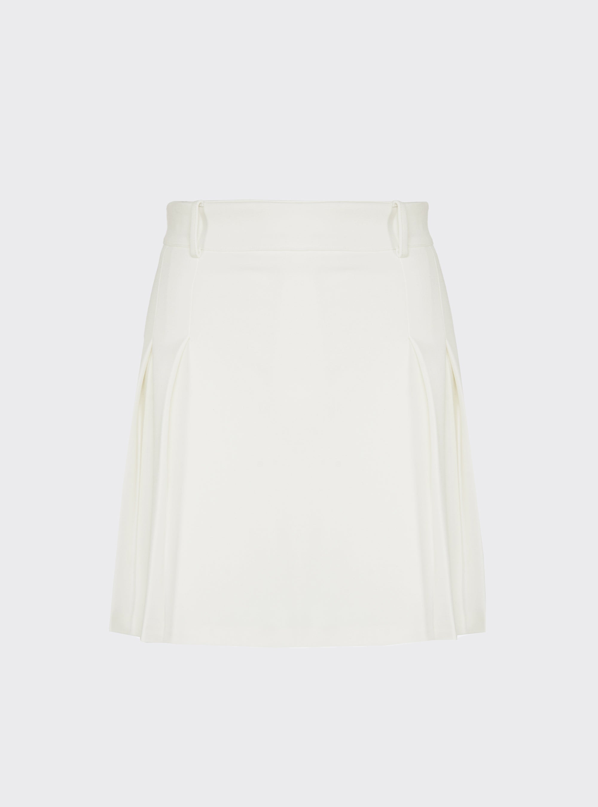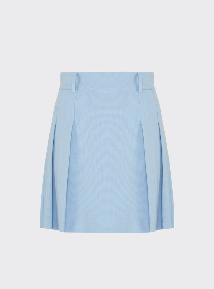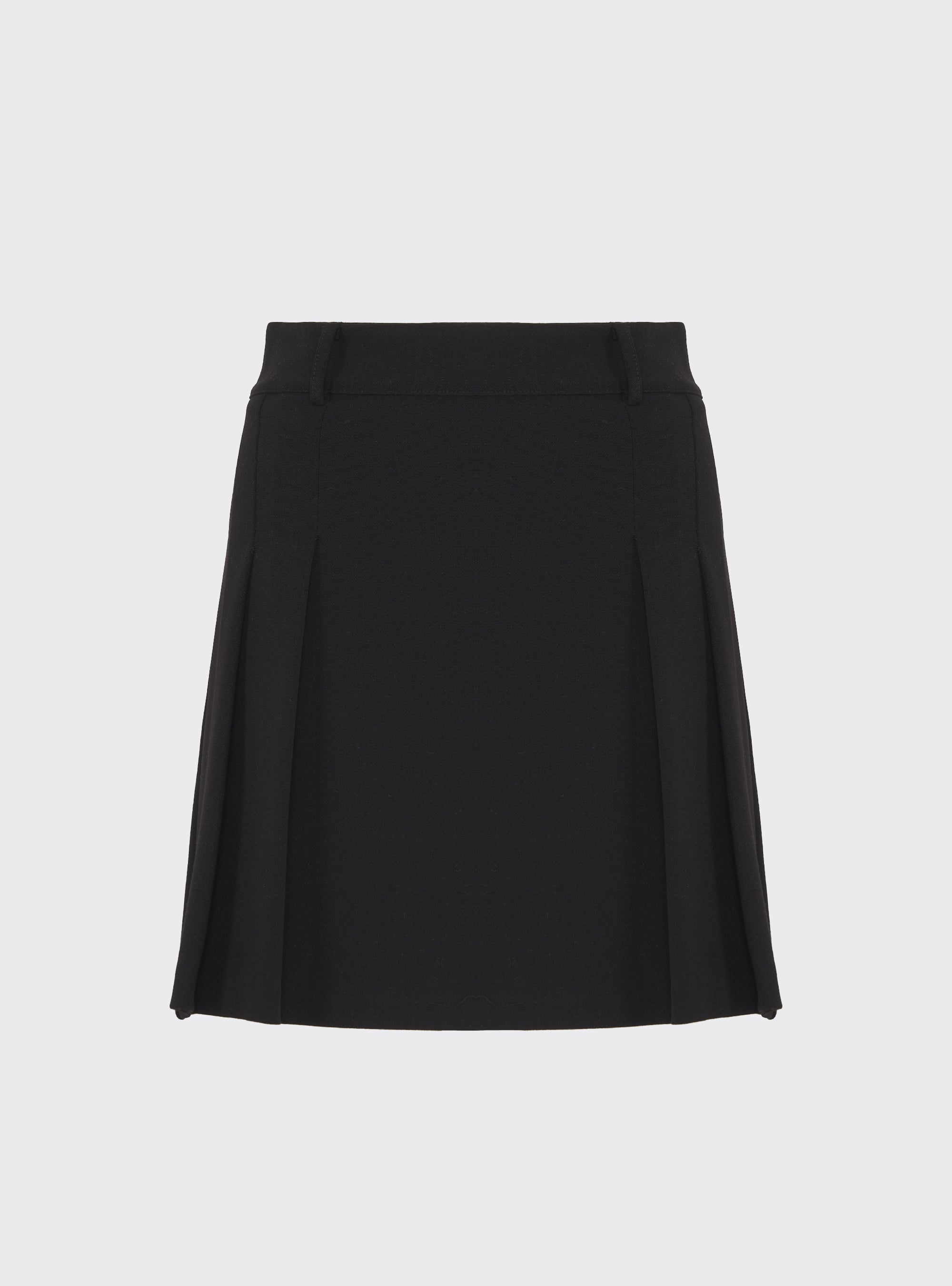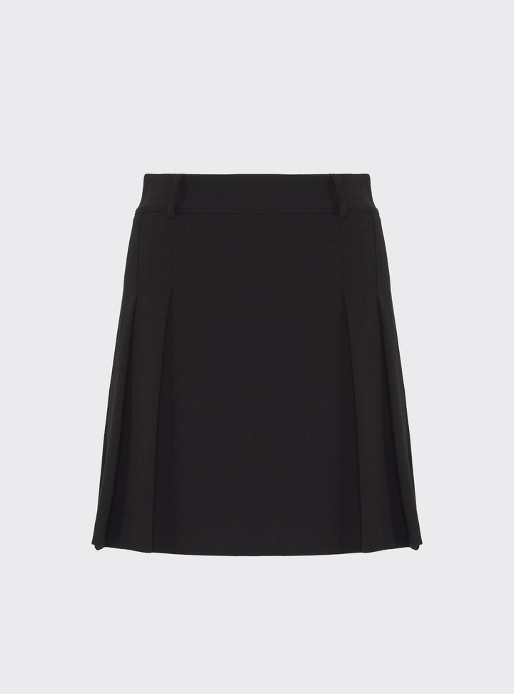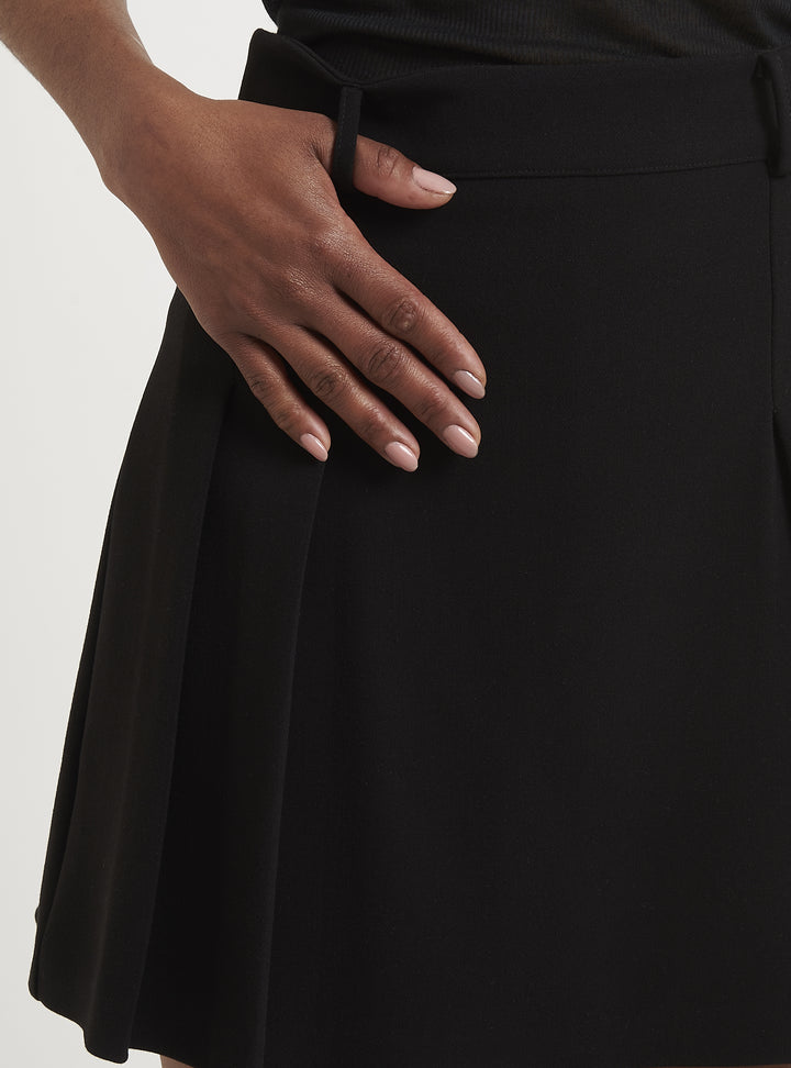 Wool skirt-shorts. Finished with variegated knife pleats and a regular fit. True to size fit.