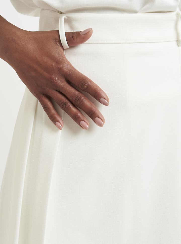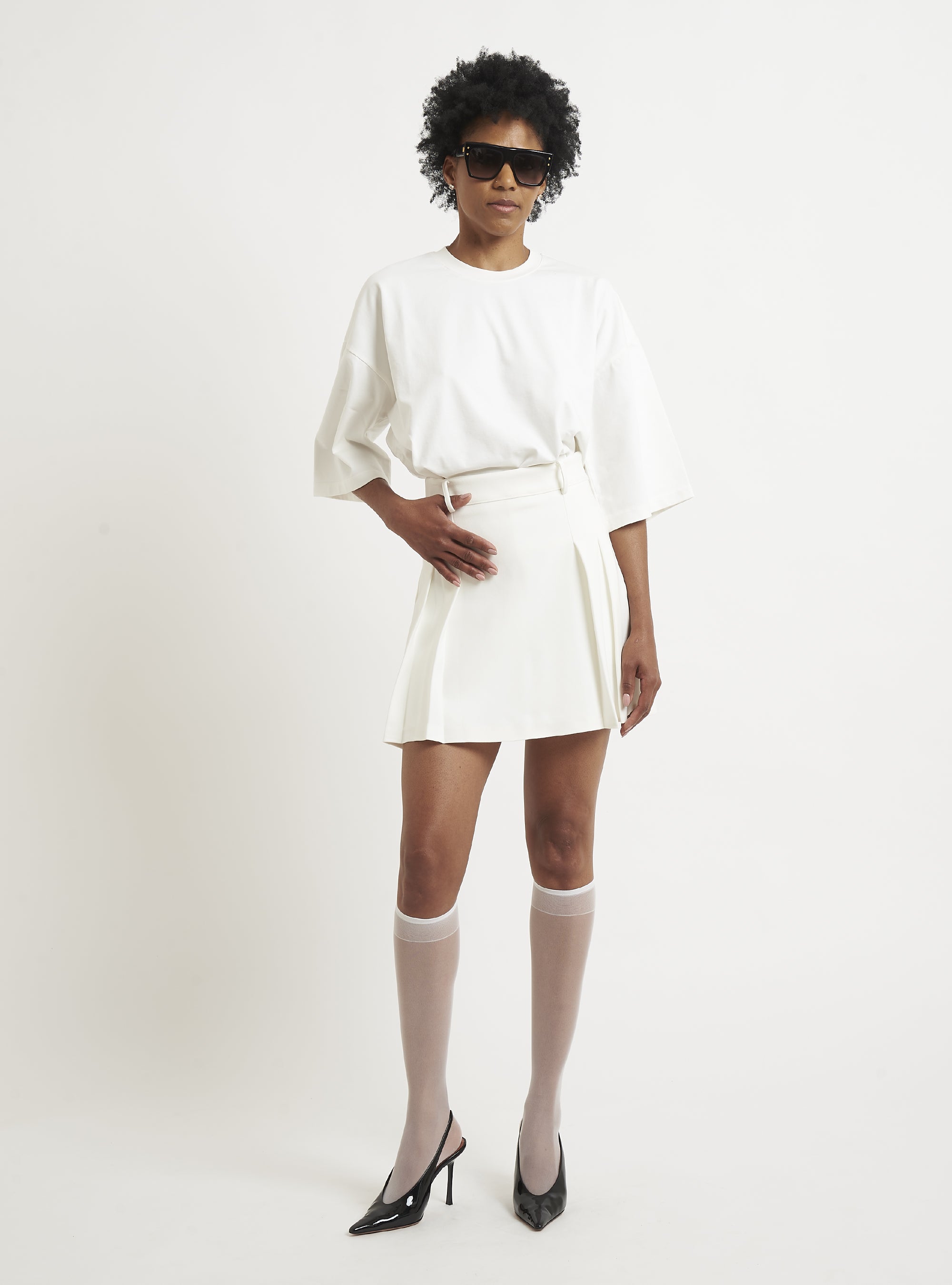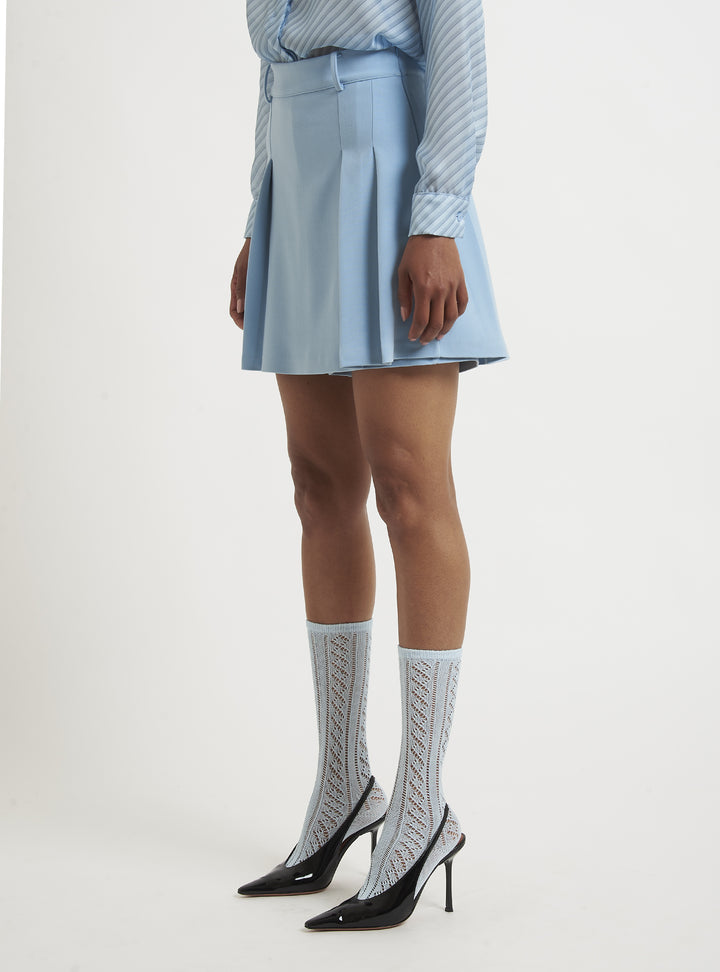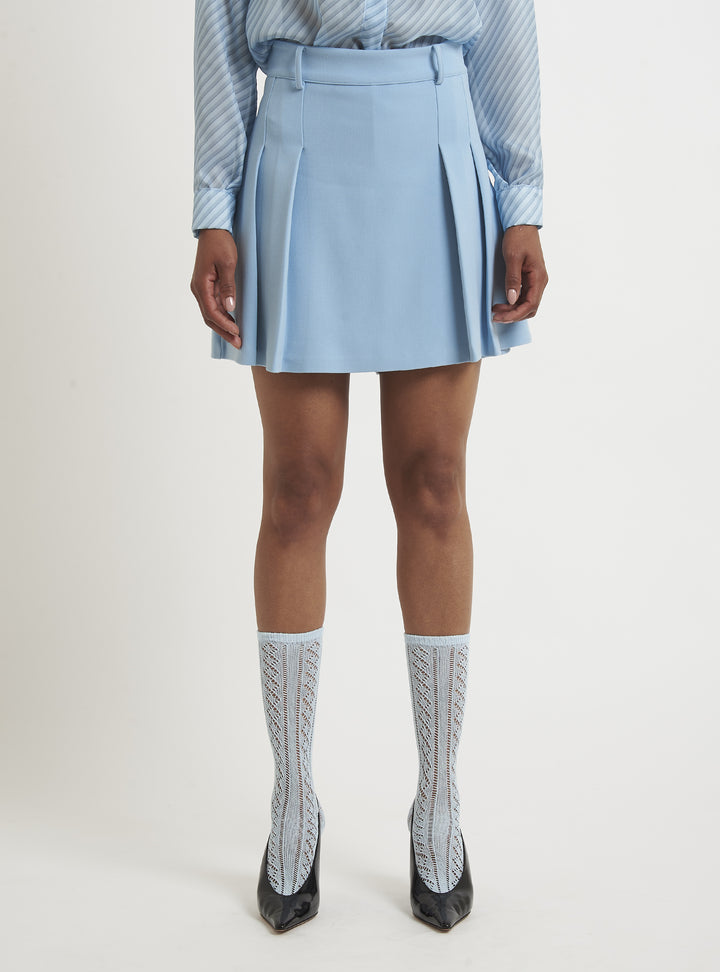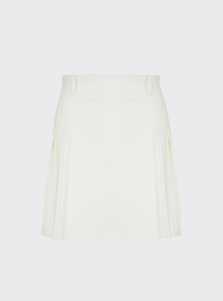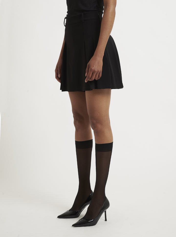 Wool skirt-shorts. Finished with variegated knife pleats and a regular fit. True to size fit.