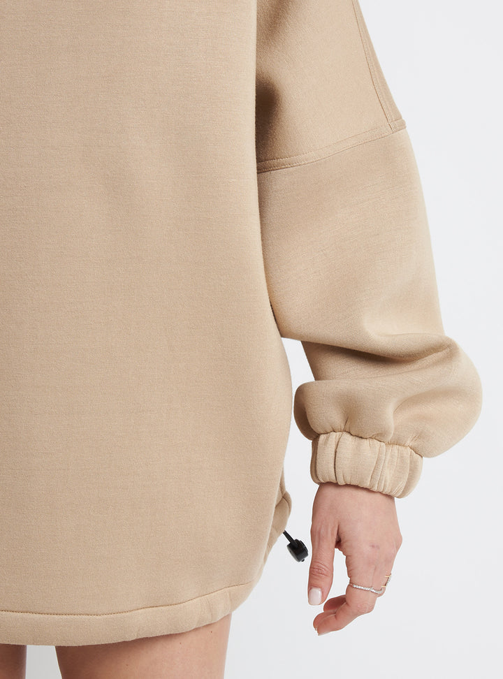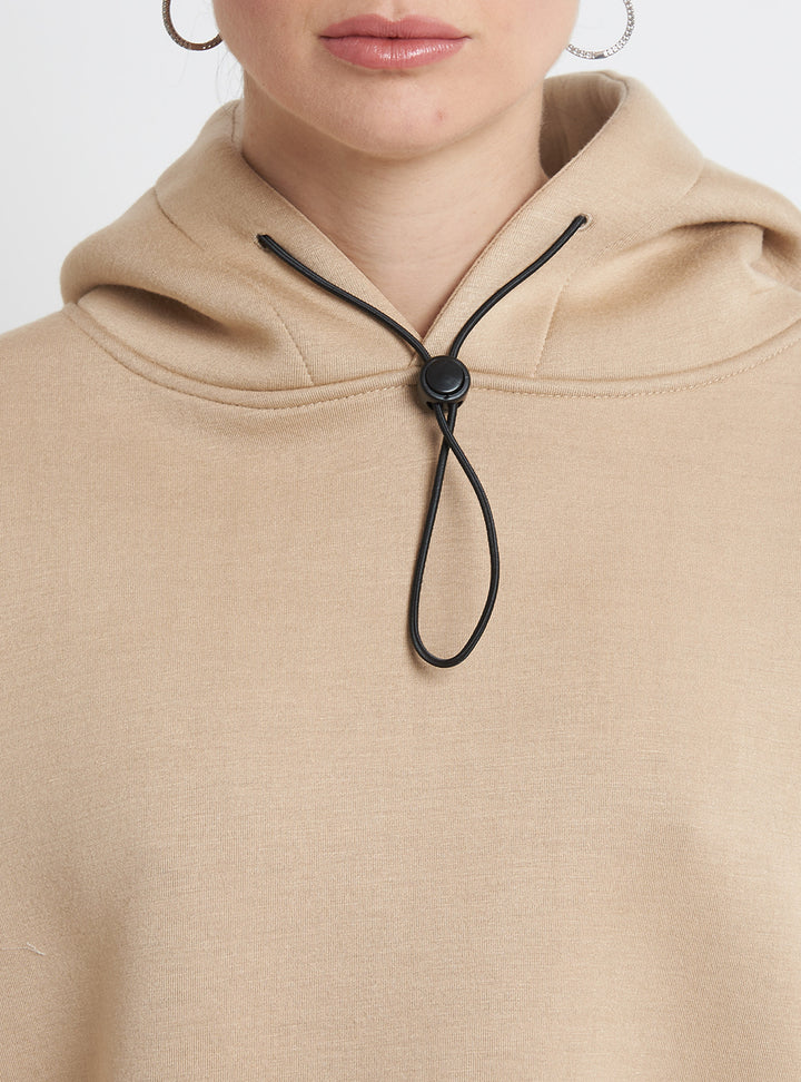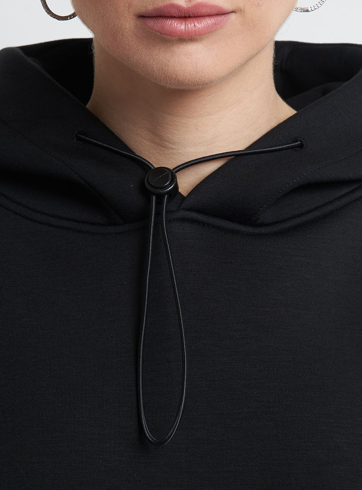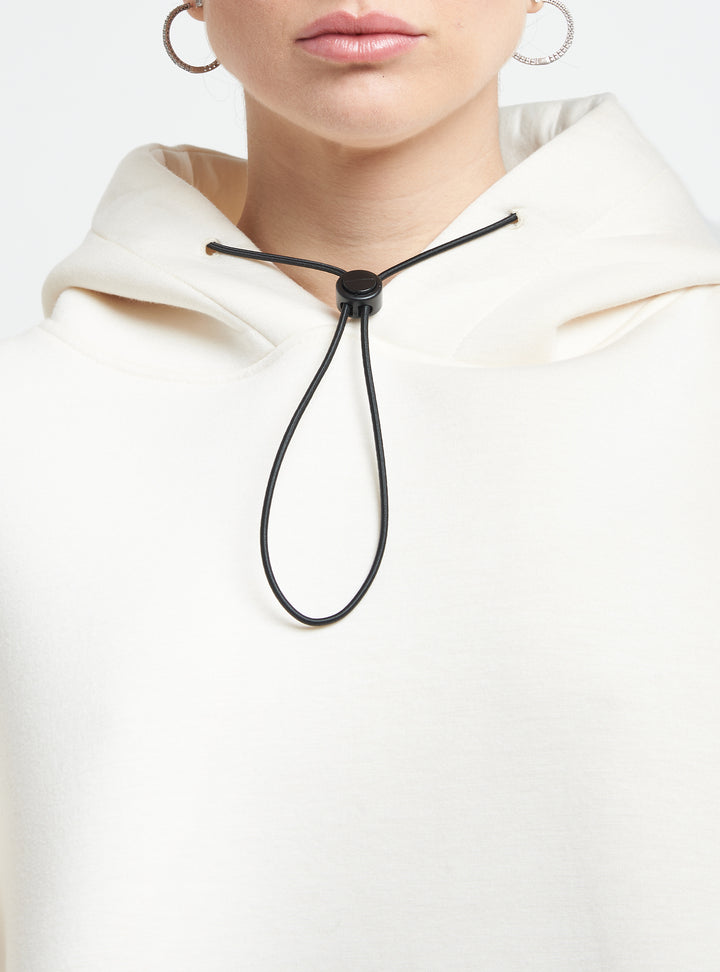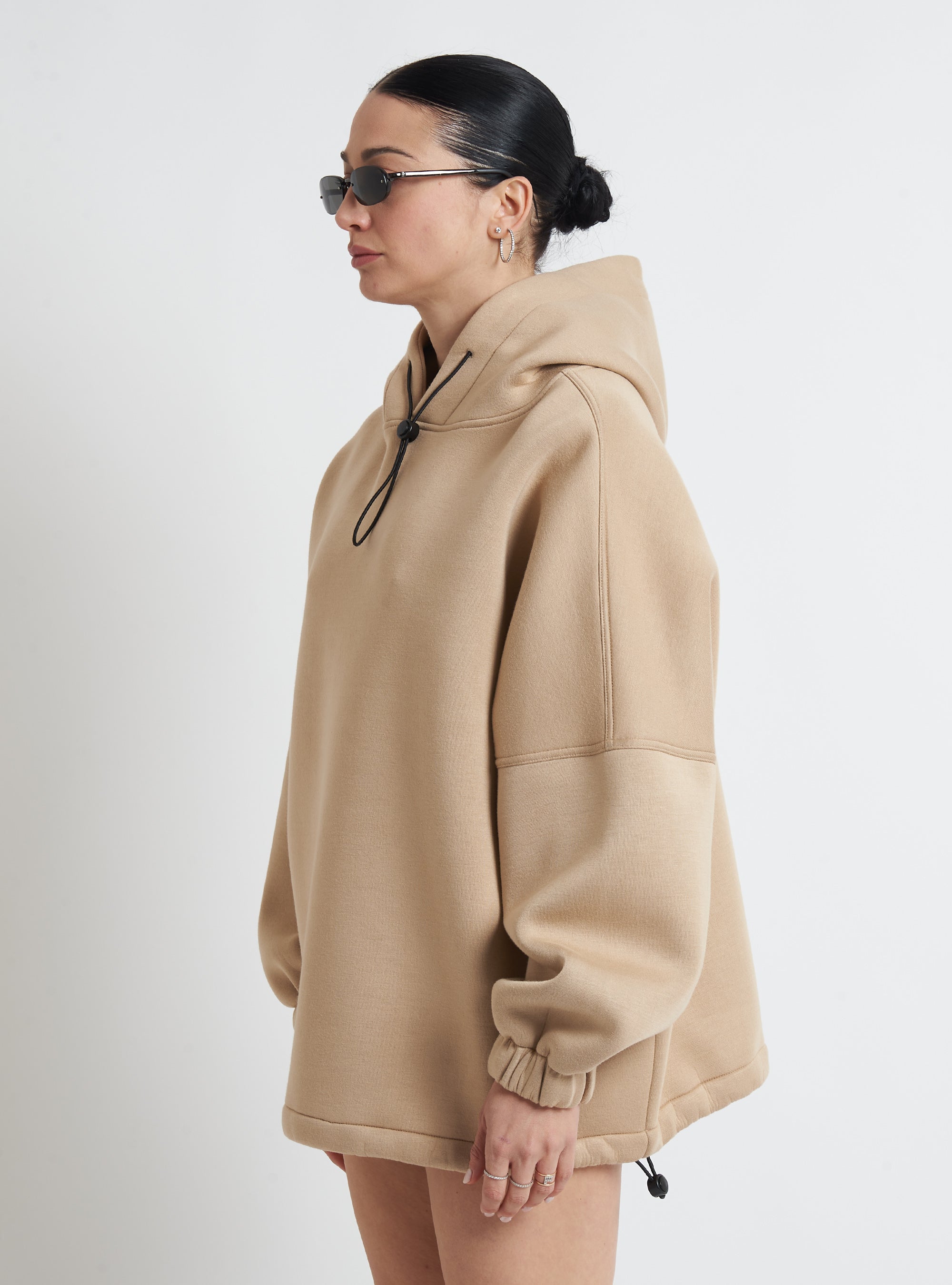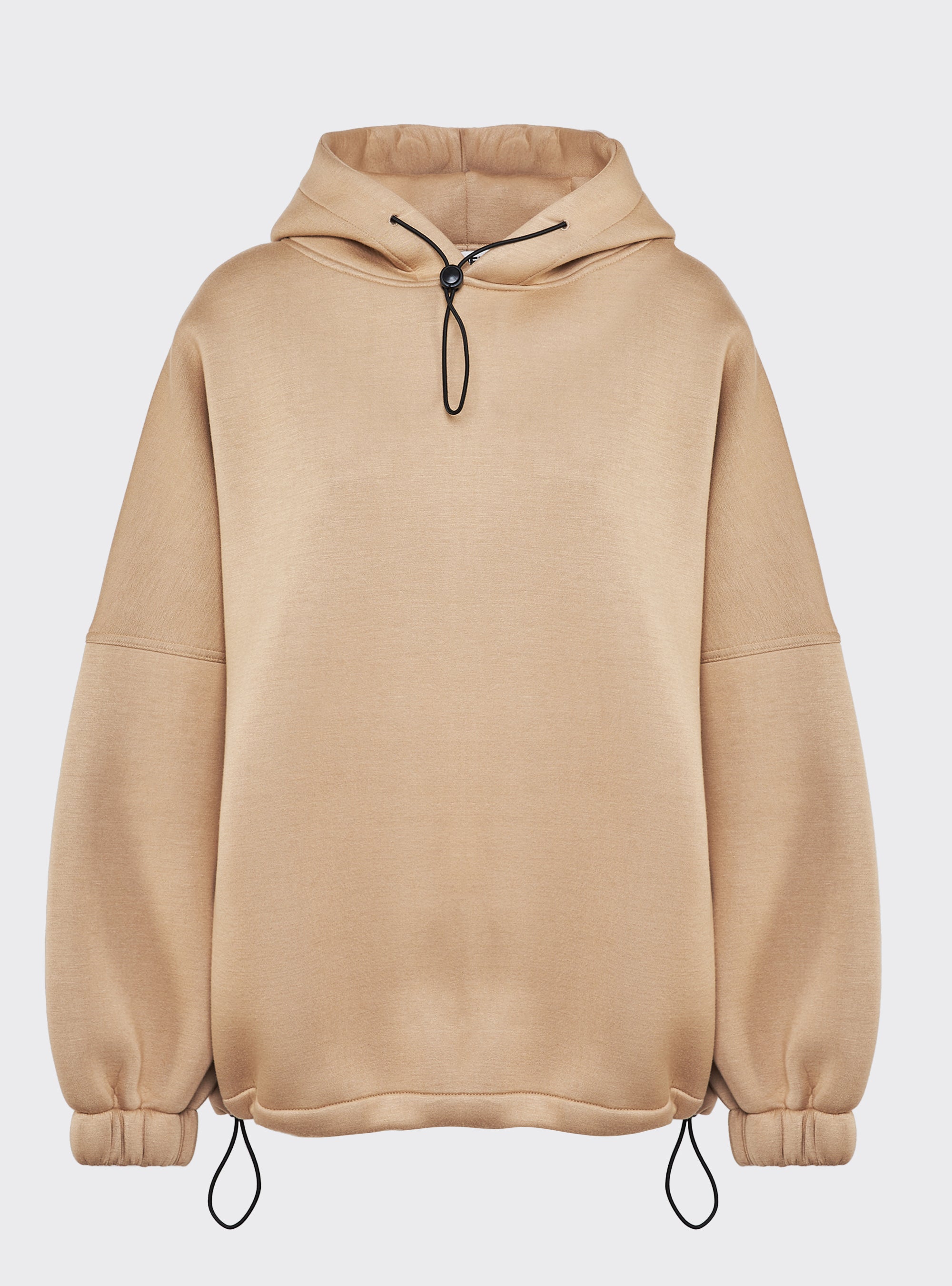 Super oversized sweatshirt with hood, finished with an adjustable drawstring, in neoprene. This piece was designed with many body types and gender expressions in mind.